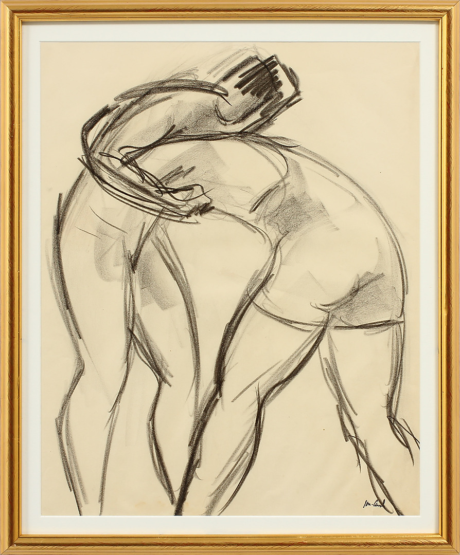140411. JOHN JON-AND. Trækulstegning. Stempel signeret.