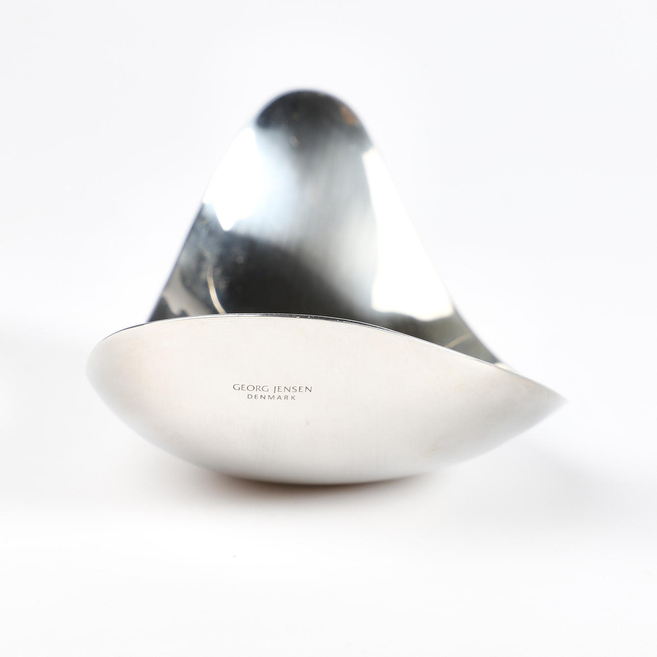 Skål, "Løv", Georg Jensen længde 16 cm Lysestage, "Twilight", højde 16 cm.