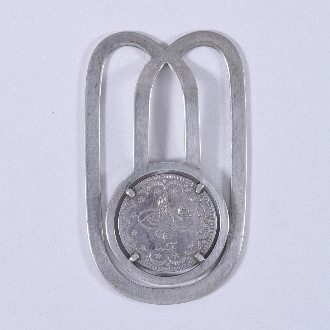 1406820. BANKKLIPPE MED TYRKISK MØNT, sølv.