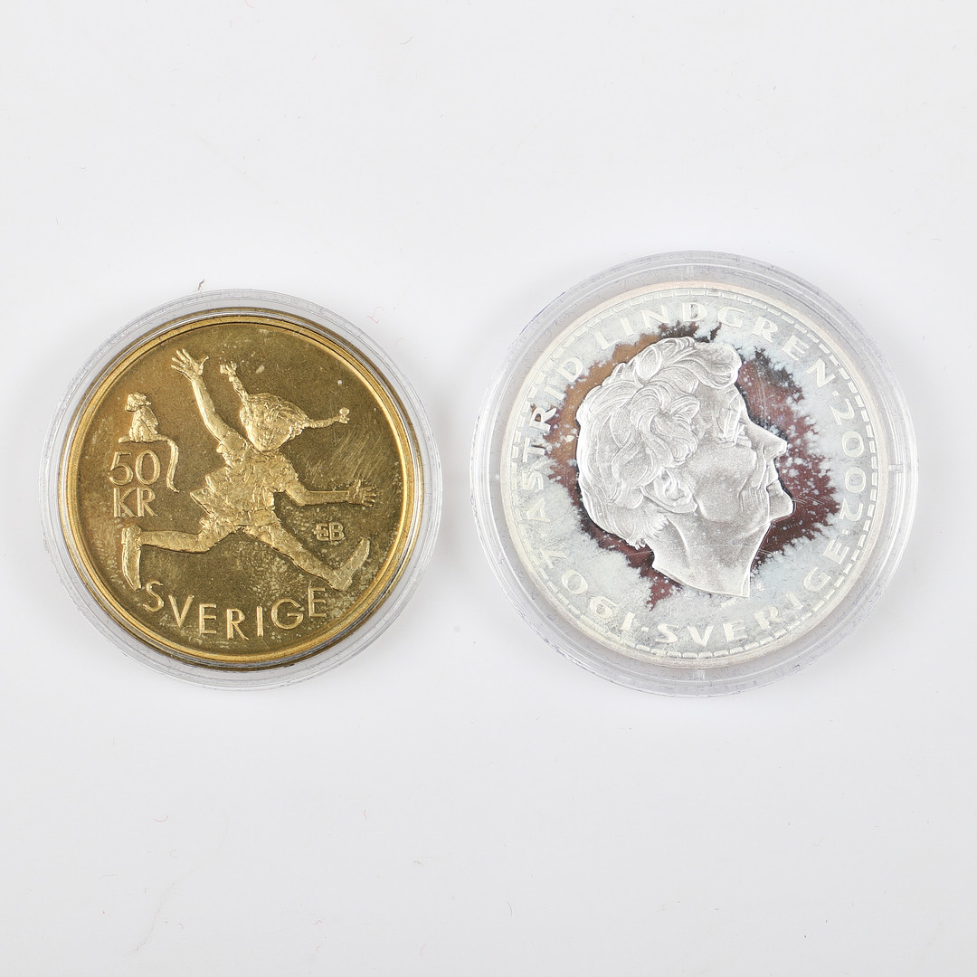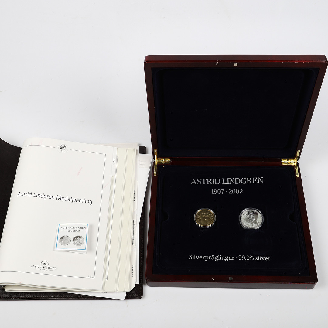 1408797. MØNTSAMLING, Astrid Lindgren 1907-2002, sølv.