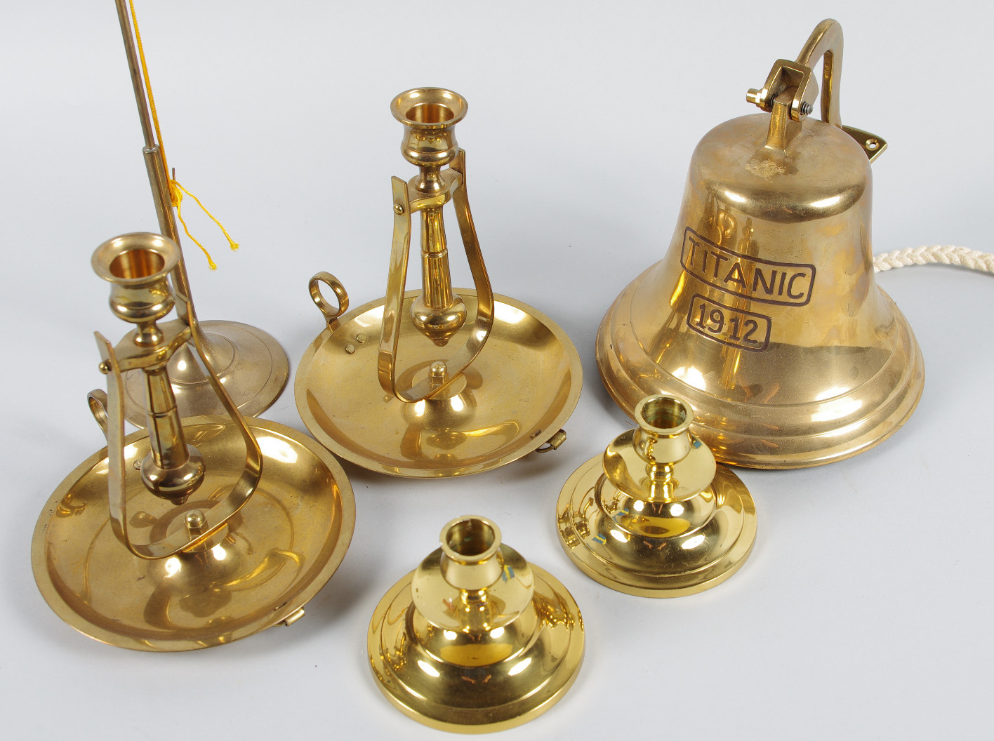 141021. 2 PAR LYS, VÄLLINGKLOCK OG BORDFLAG.