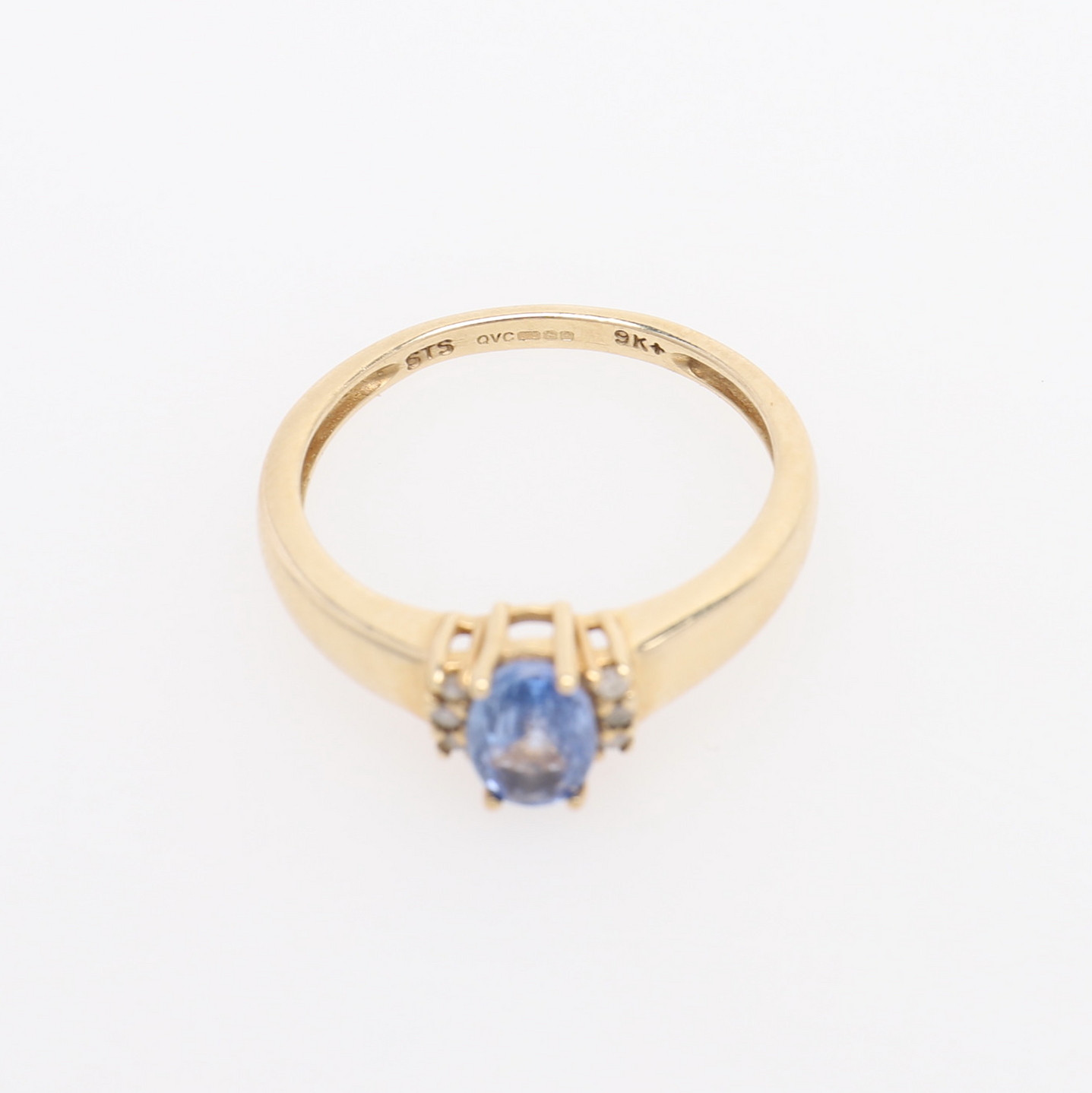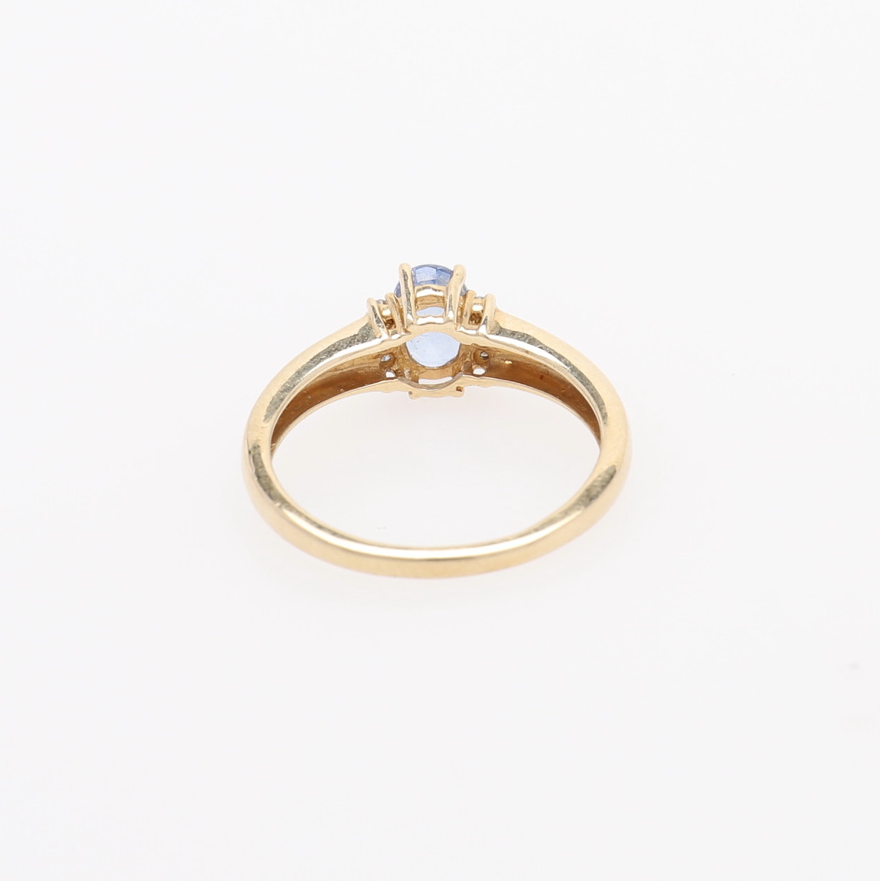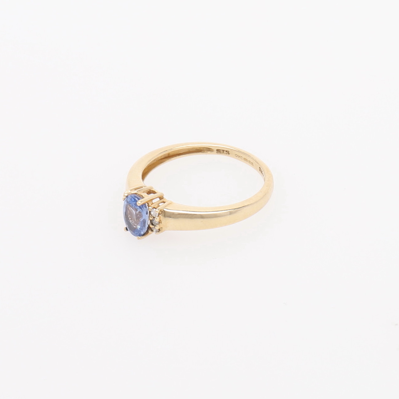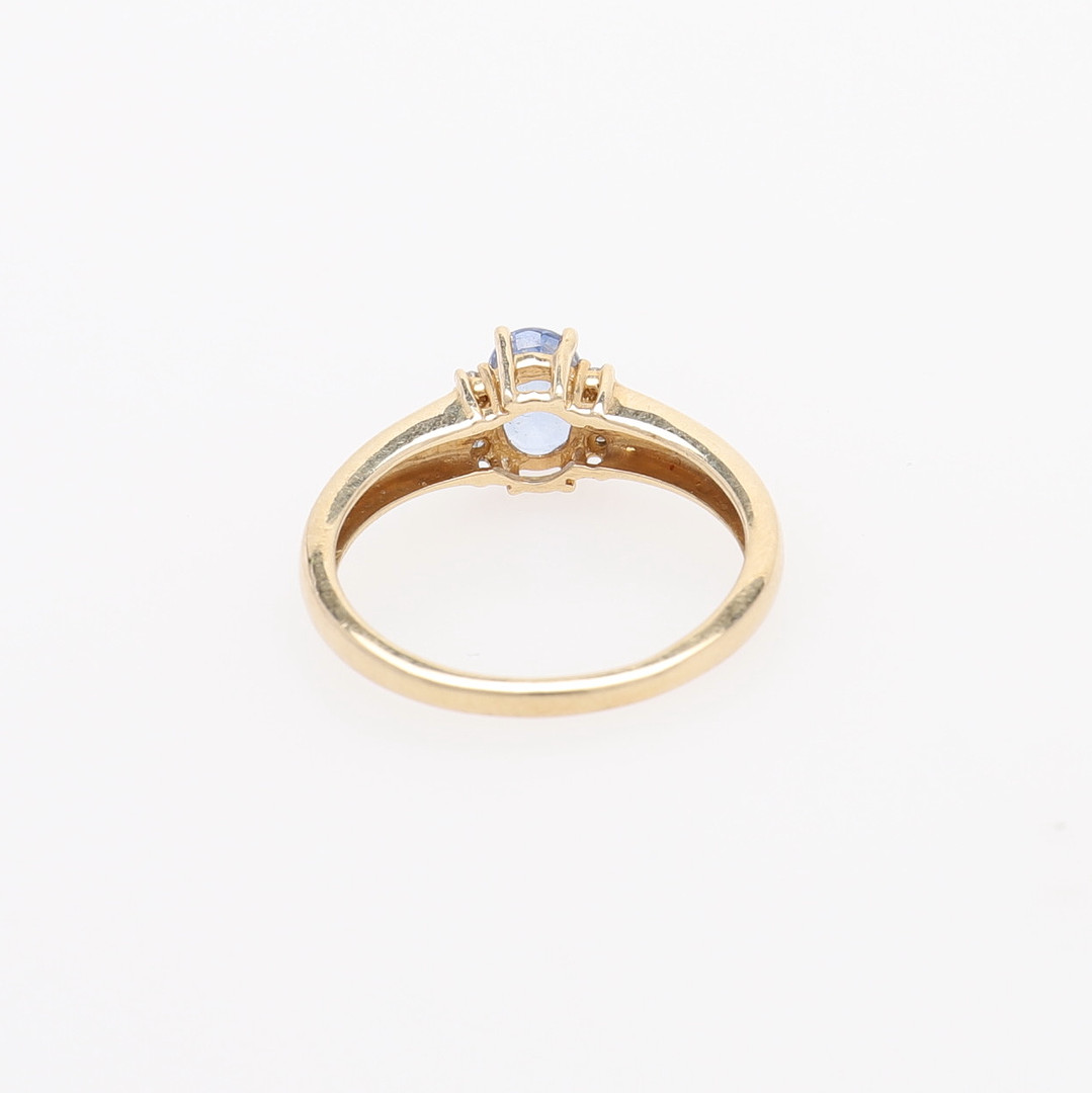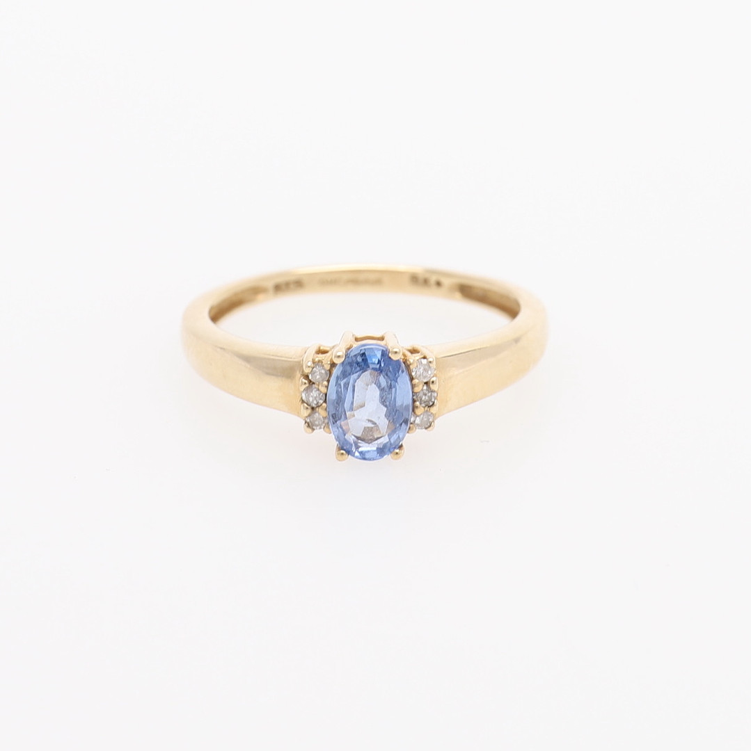 1410383. RING MED BLÅ SAFIR OG DIAMANTER.
