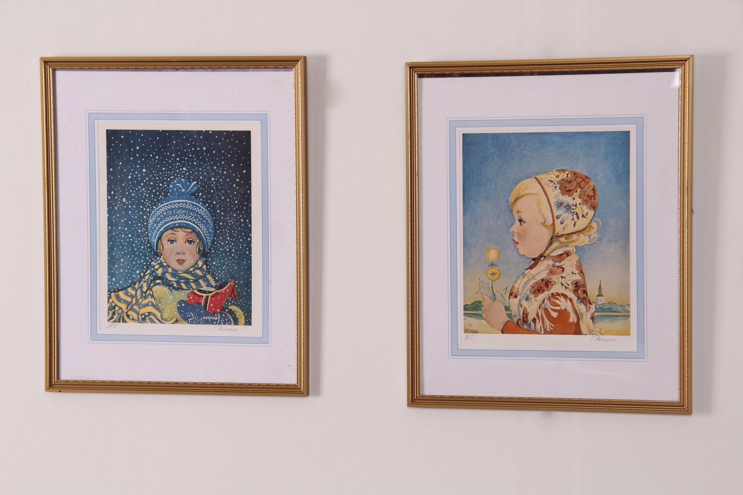 141686. EINAR NERMAN. Tryk, 2 stk, Blæk og blyant Signeret HC, Nerman.