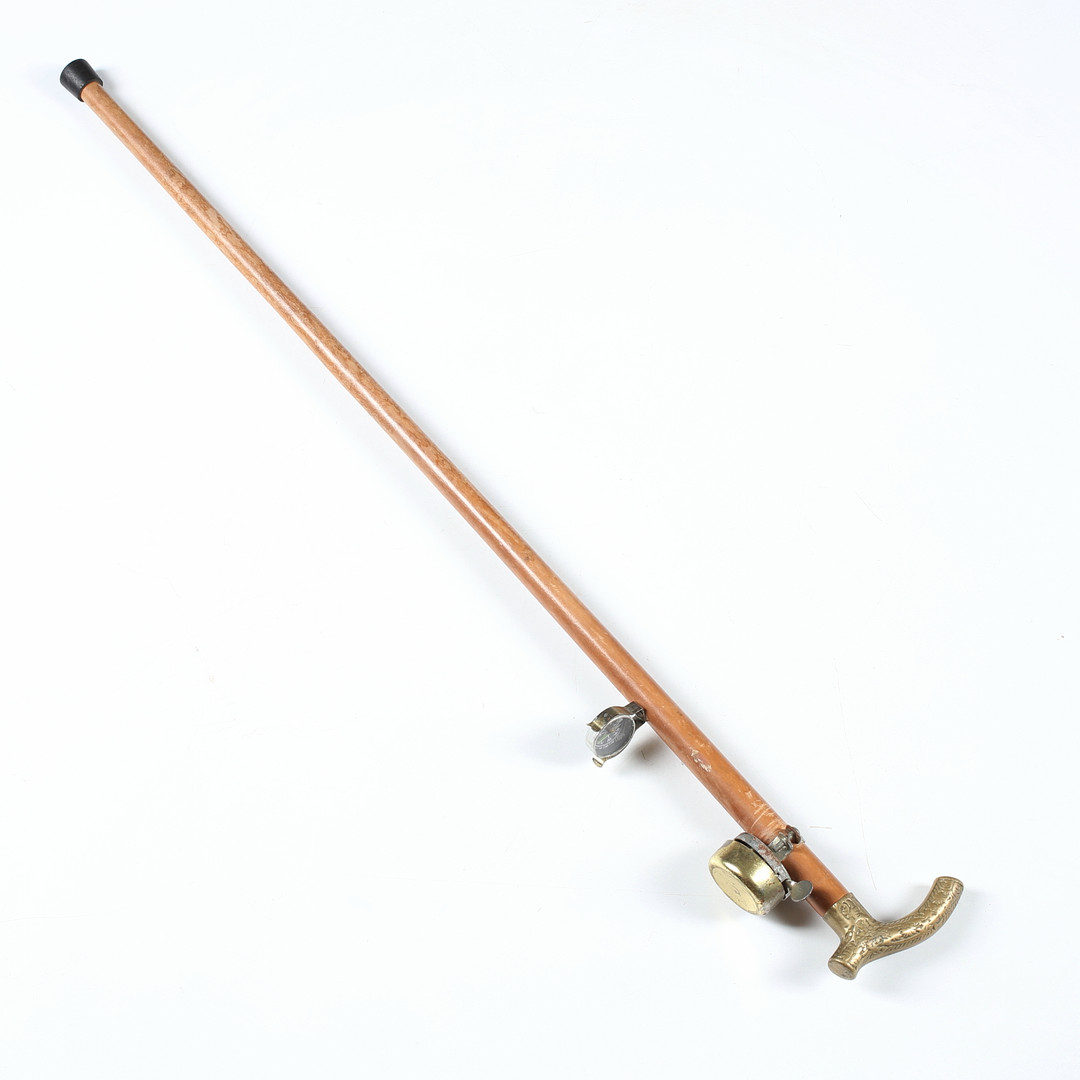 1423938. CANNE, messing/træ, med kompas og klokke, 1900-tallet.