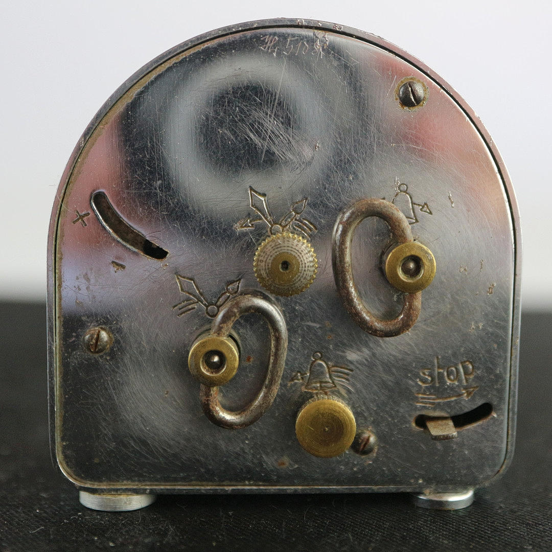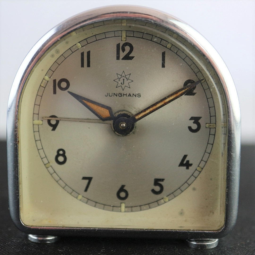 Junghans, Art Deco, rejsevækkeur, krom urkasse, 1920, mål: 4,5 x 5 cm.