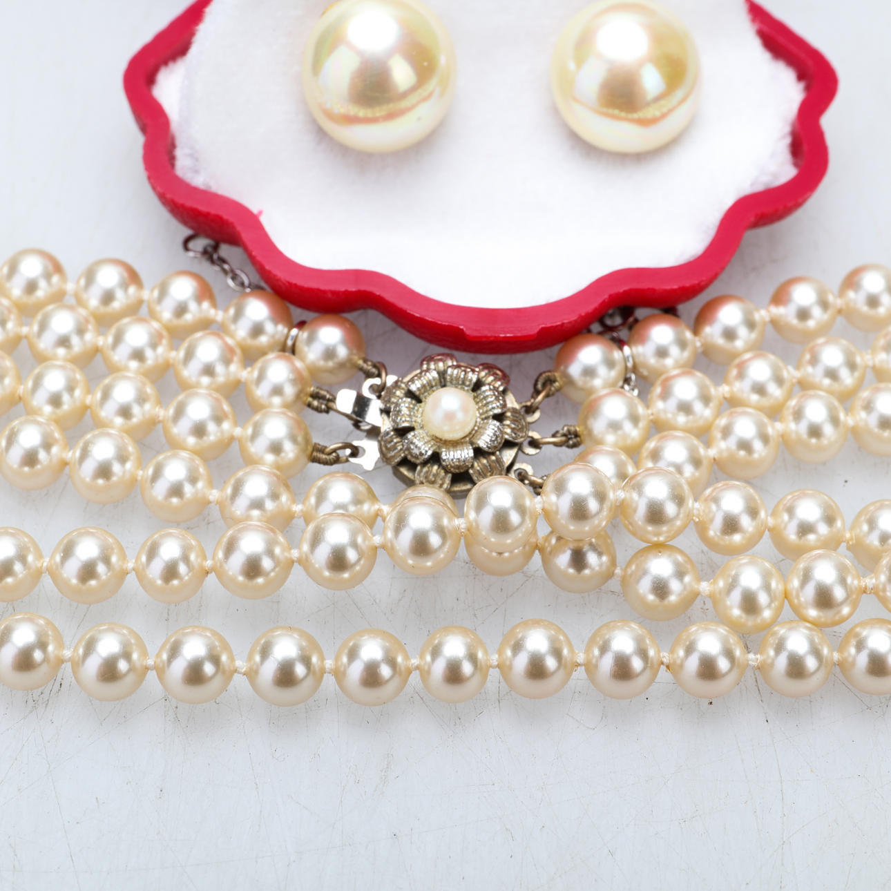 HALSKÆDE og ØRERINGE, 4 dele, "mallorca perler".