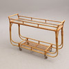 Blomsterbord, på hjul, glashylder, højde 62, længde 92, bredde 26 cm Hjulene er løse Piedestalhøjde 67 cm.