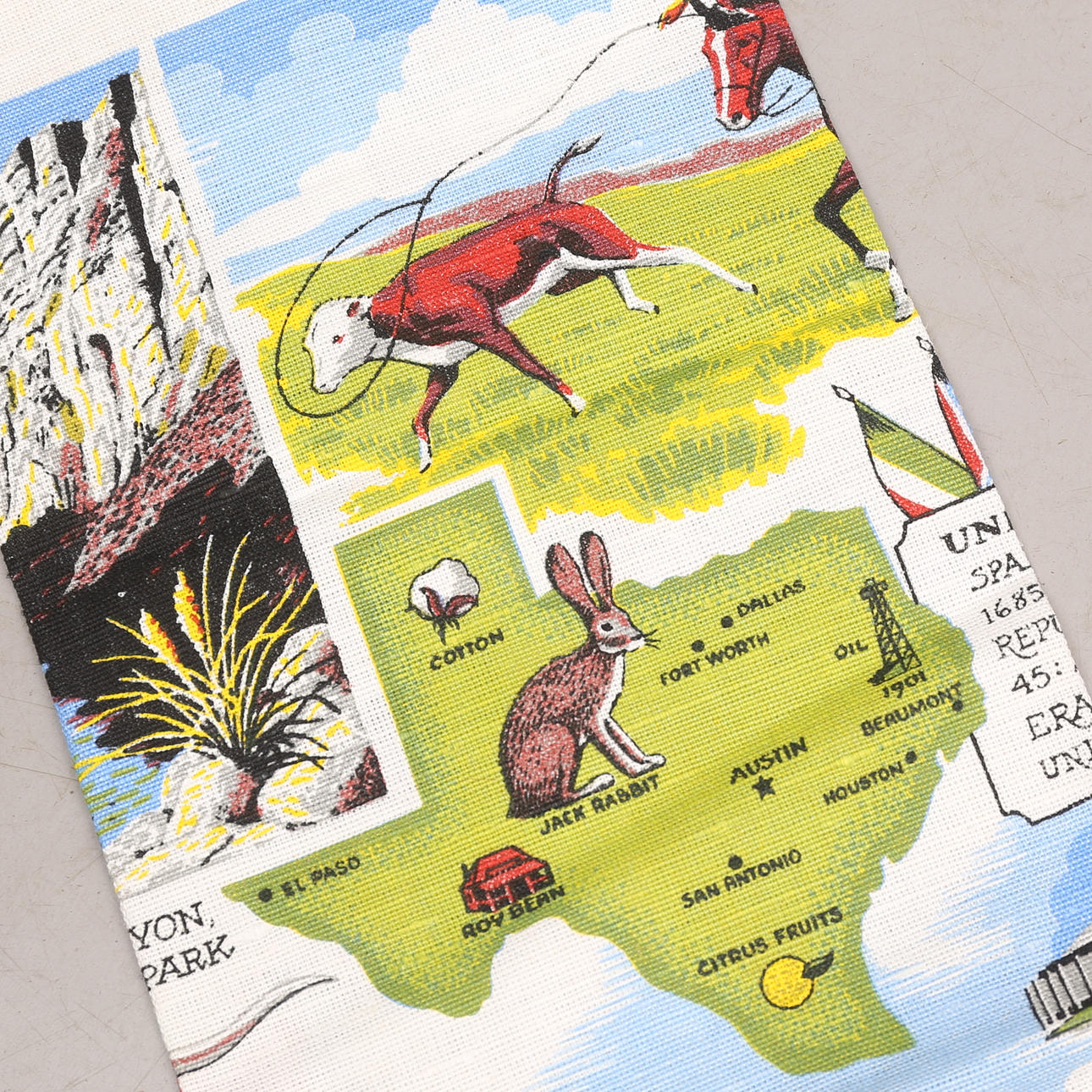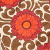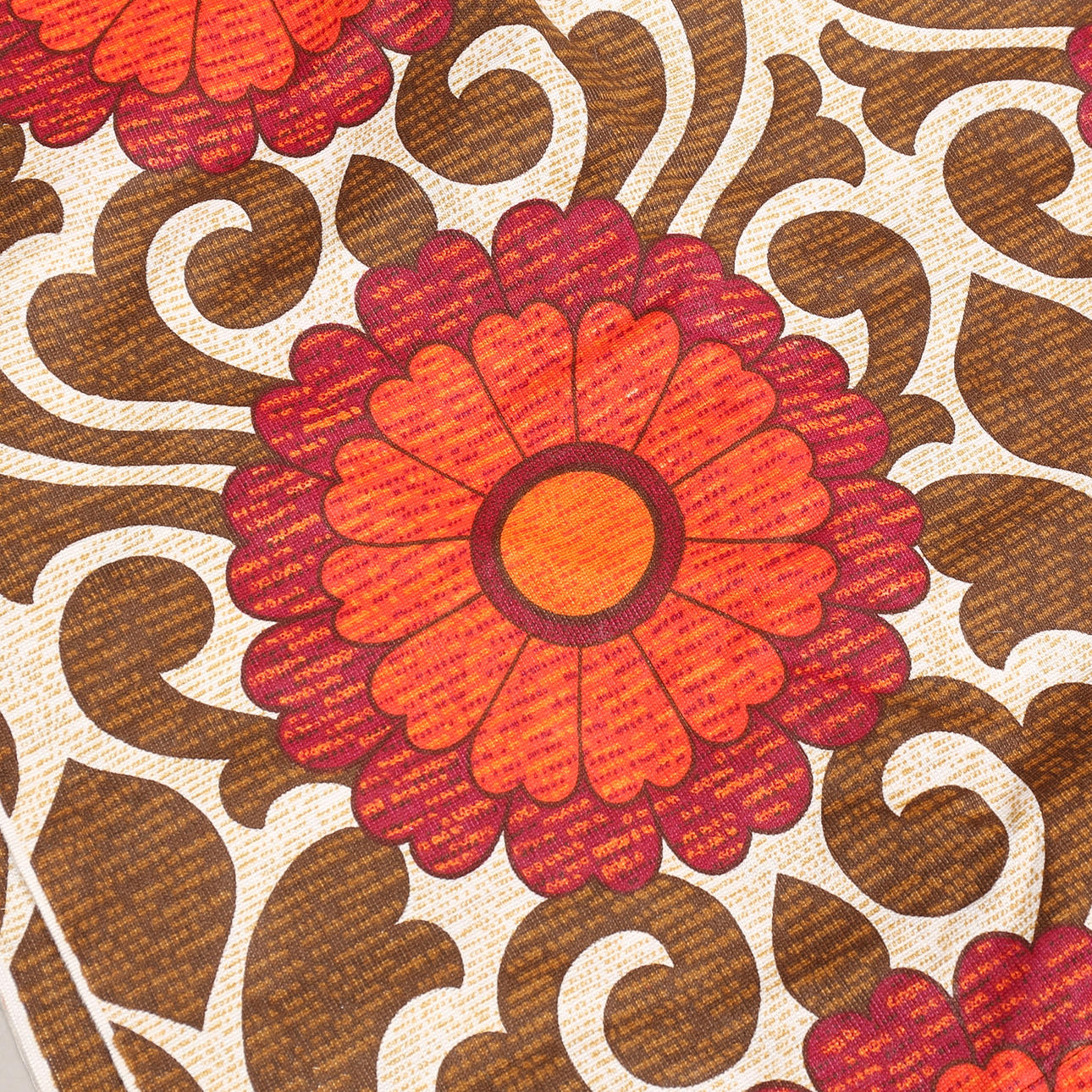 Draperi 70'erne, længde ca 200 cm, bredde 115 cm Bomuldsstof rød bund, længde ca 240 cm, bredde 120 cm Plastdug med frynser 90x65 cm Dug 160x160 cm.
