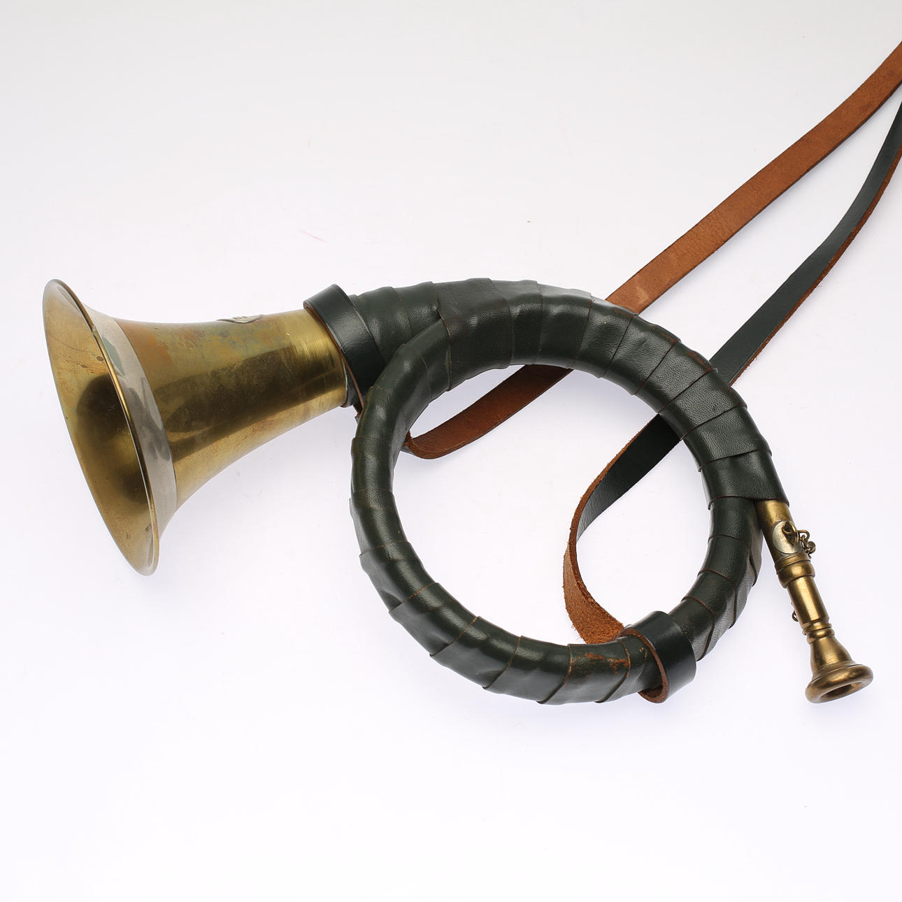 JAGTHORN, messing og læder, Fürst-Pless, 20. århundrede.