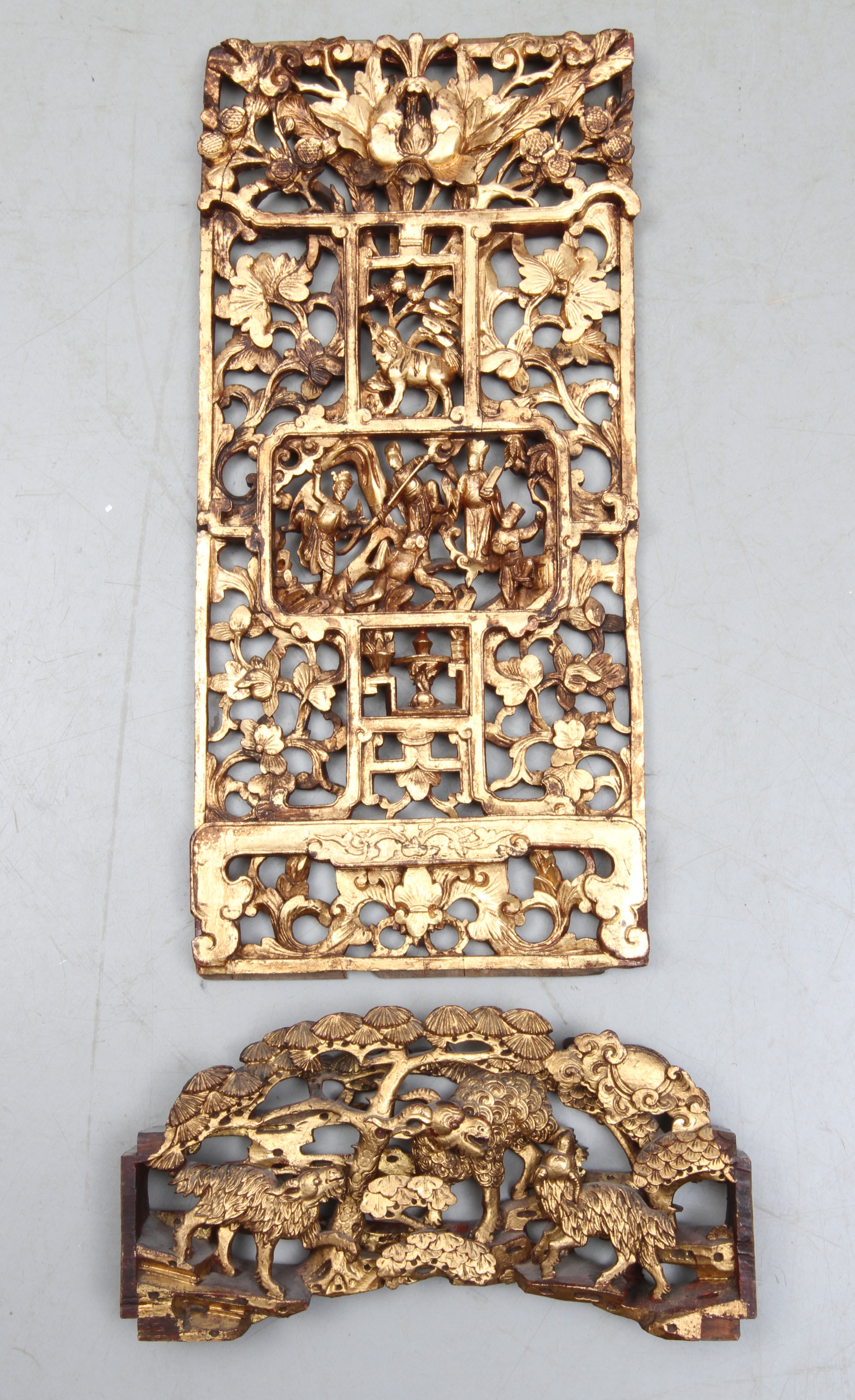 144598. DEKORATIVE ELEMENTER, 2 stk, udskåret træ, orientalsk.