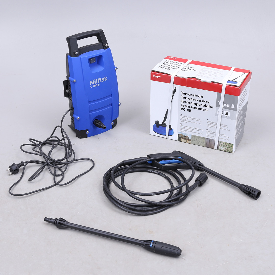 1448858. HØJTRYKSVASKERE, TERRASSEVASKERE, 2 dele, Nilfisk, Biltema.