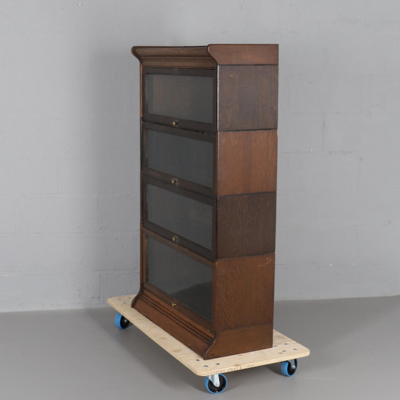 ca. 1930'erne i bejdset eg, på sokkelbund, 142 cm høj, 87 cm bred, 37 cm dyb.