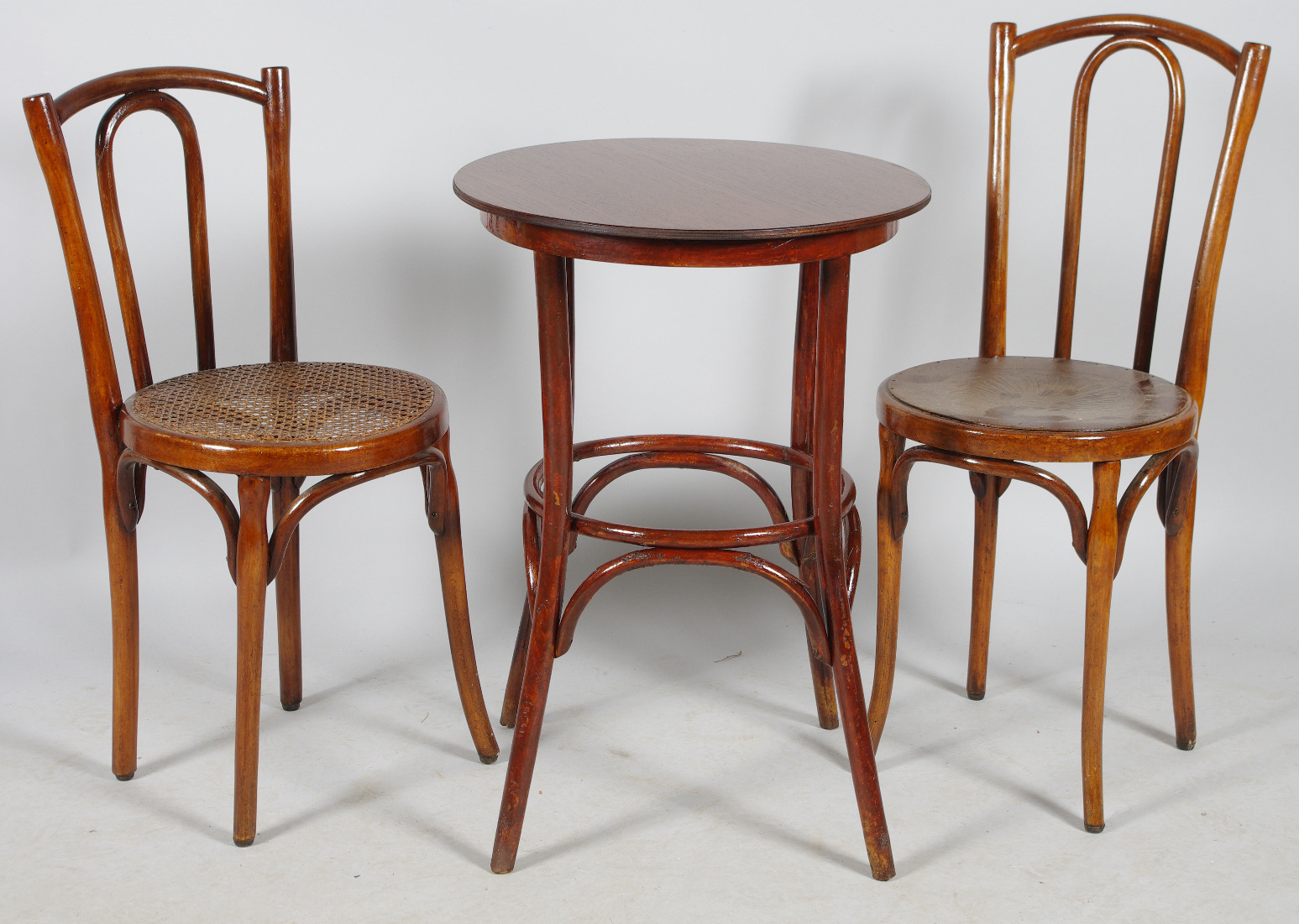 145148. BORD OG 2 STOLE, bøjet træ.