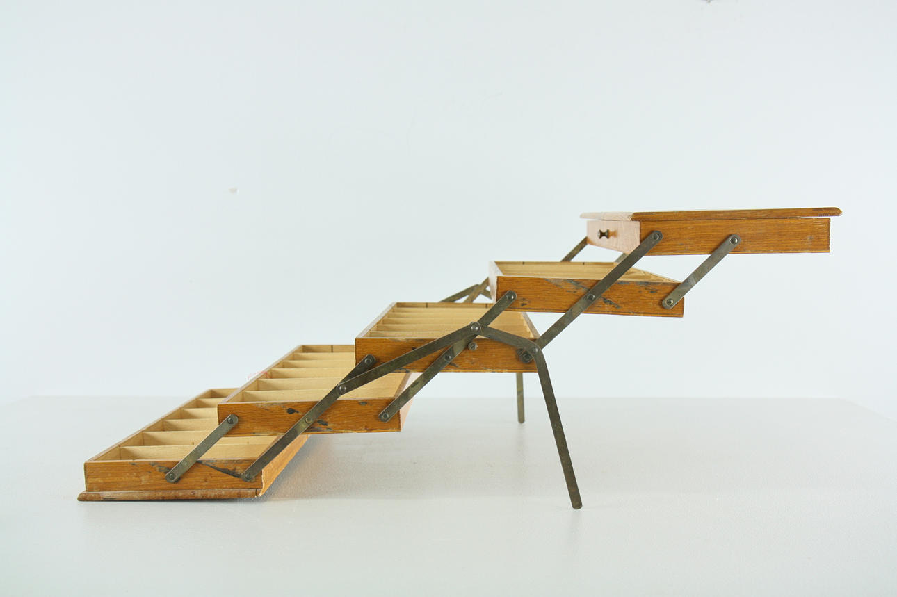 Anden stand, mangler glas på to skuffer. Et glas har en revne.
