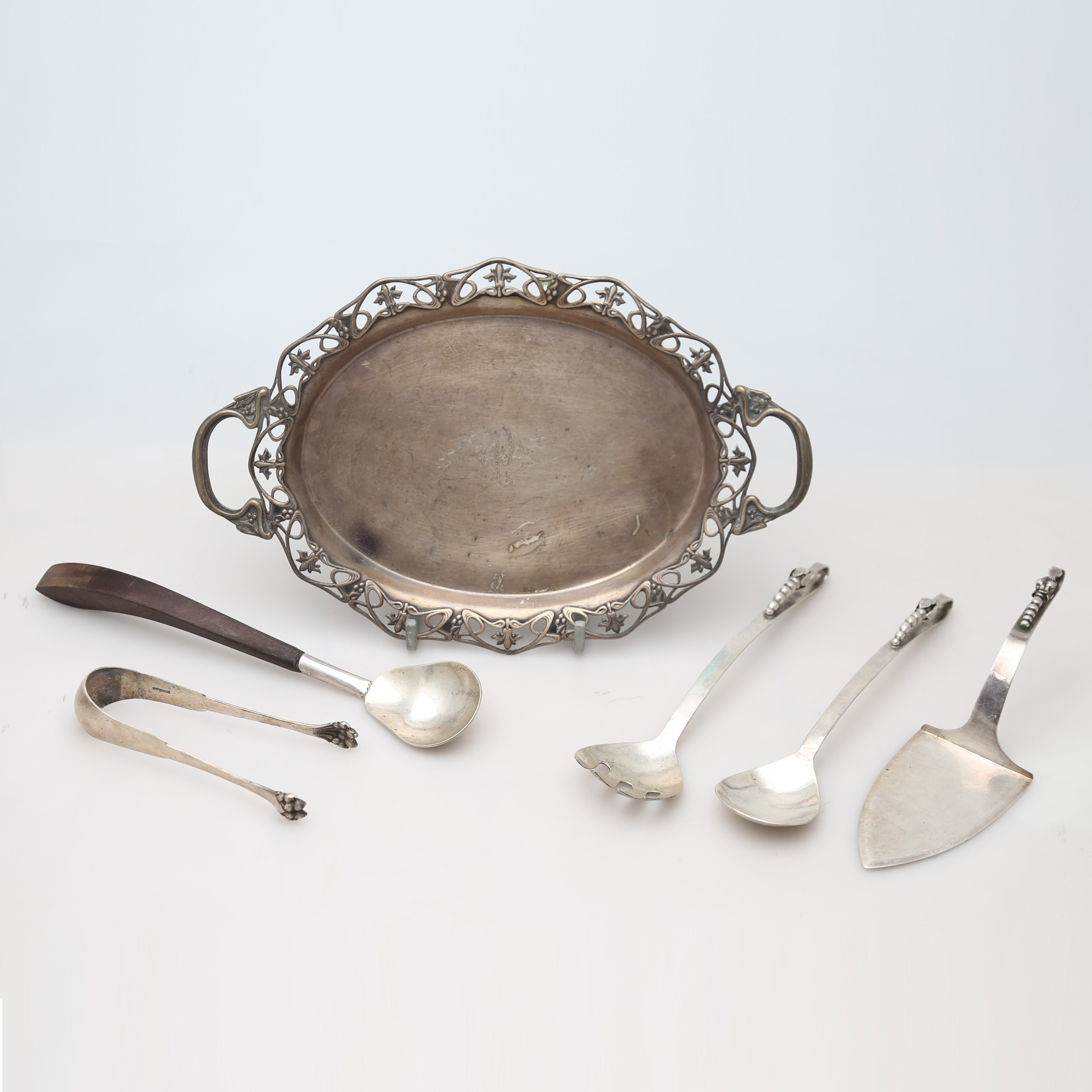 1455249. Sølvbakke og servicestykker, 20. århundrede.