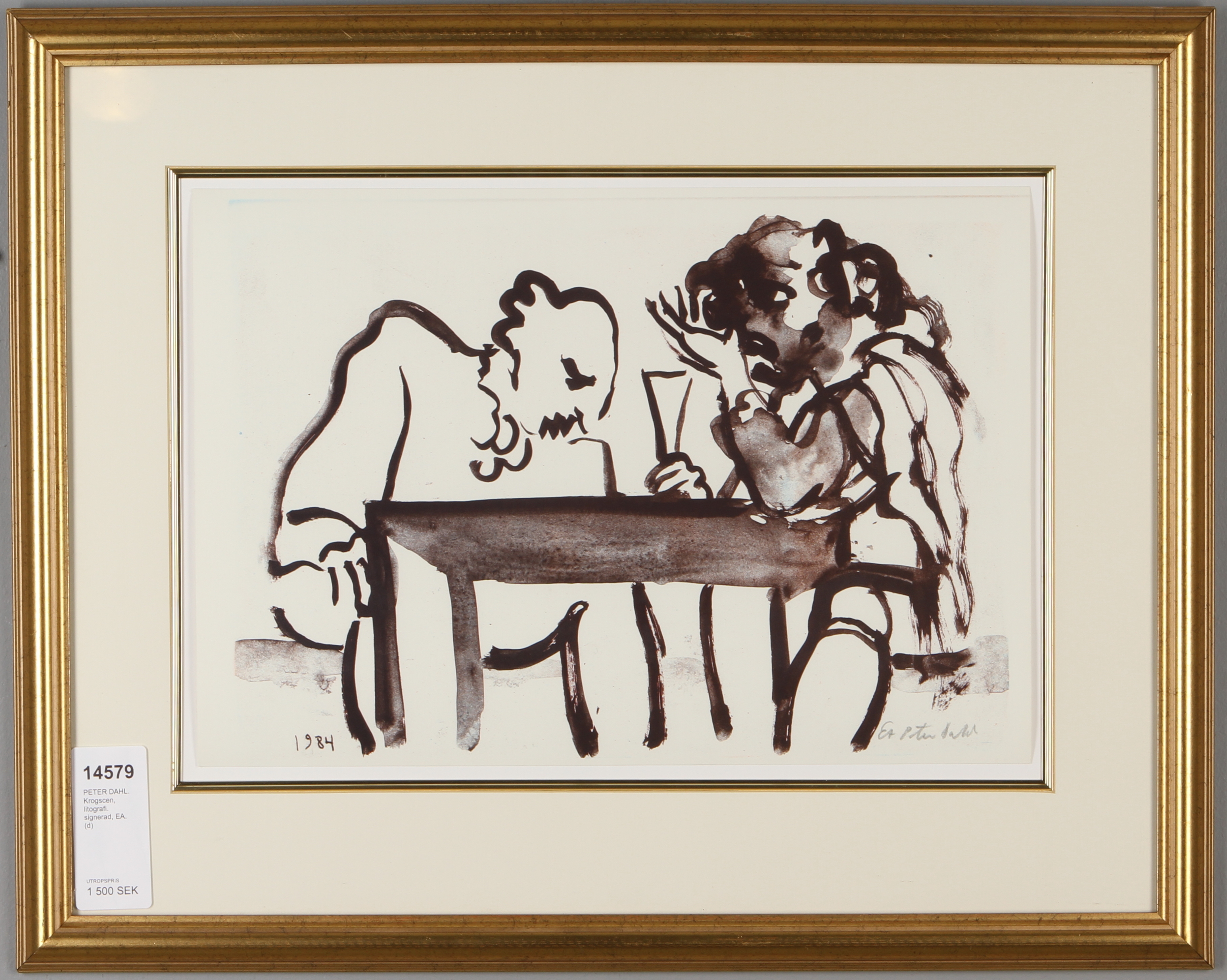 14579. PETER DAHL. Krogscene, litografi. underskrevet, EA.