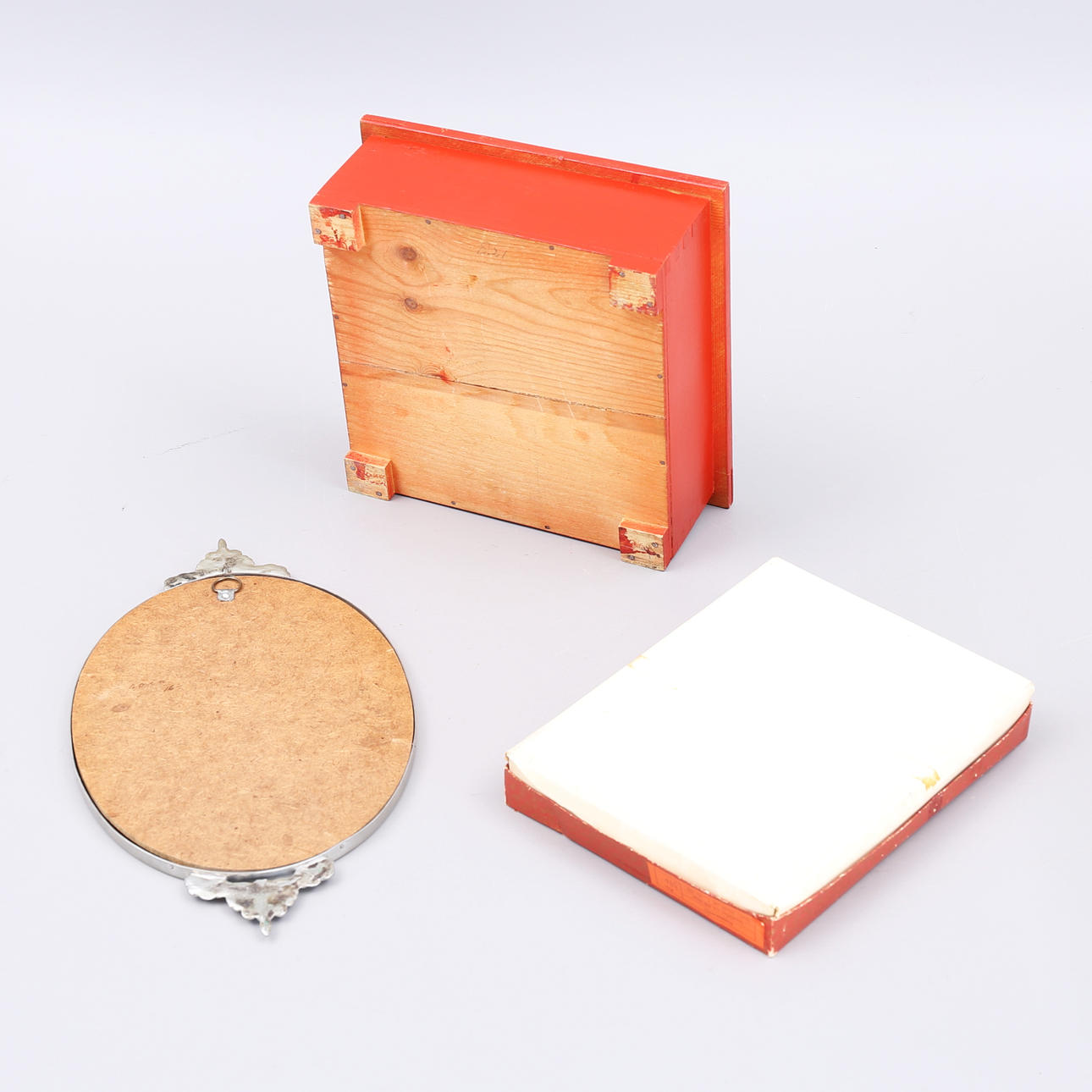 1461436. TRÆÆSKE, PUSLE, SPEJL, 3 dele, metal, træ.