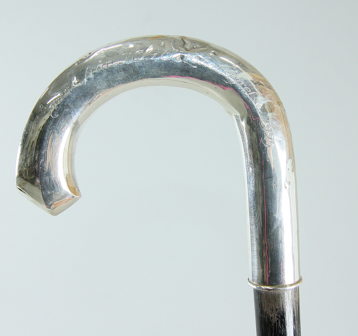 1469040. SØLV, stok med sølvkrykke, dateret 1925.