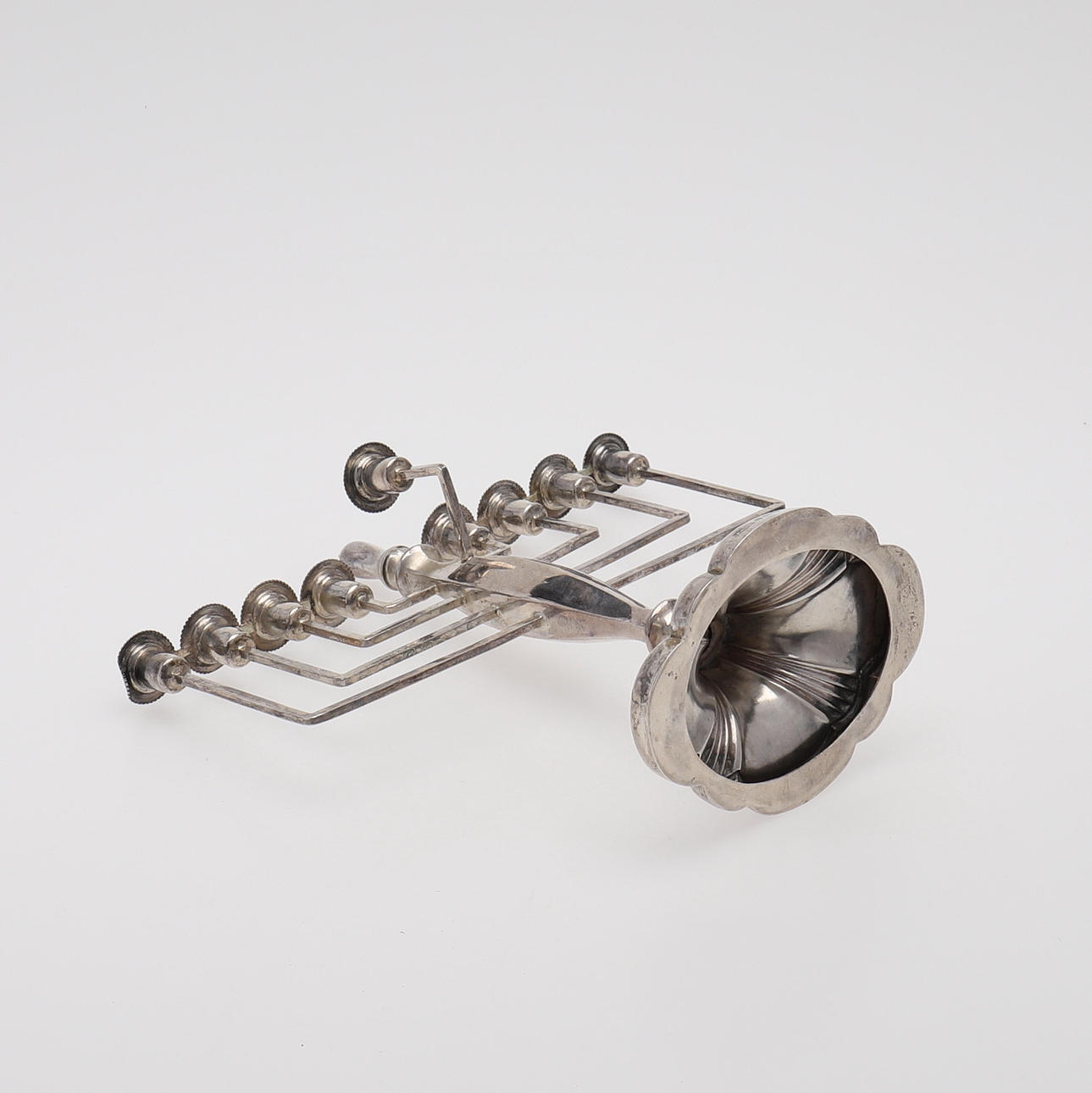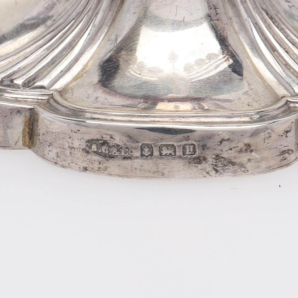 Sølv, stemplet Birmingham 1932, højde 19,5 cm, vægt 234 gram.