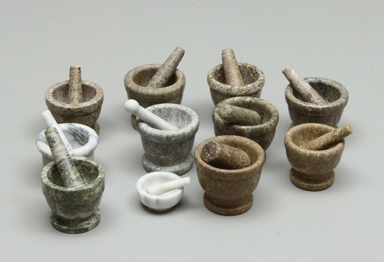 14797. Sæt MORTEL, 11 stk, sten, 1900-tallet.