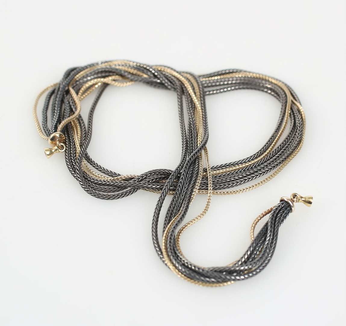 1479982. OLE LYNGGAARD. Halskæde, 14K guld og oxideret sølv, 34,0 gram.