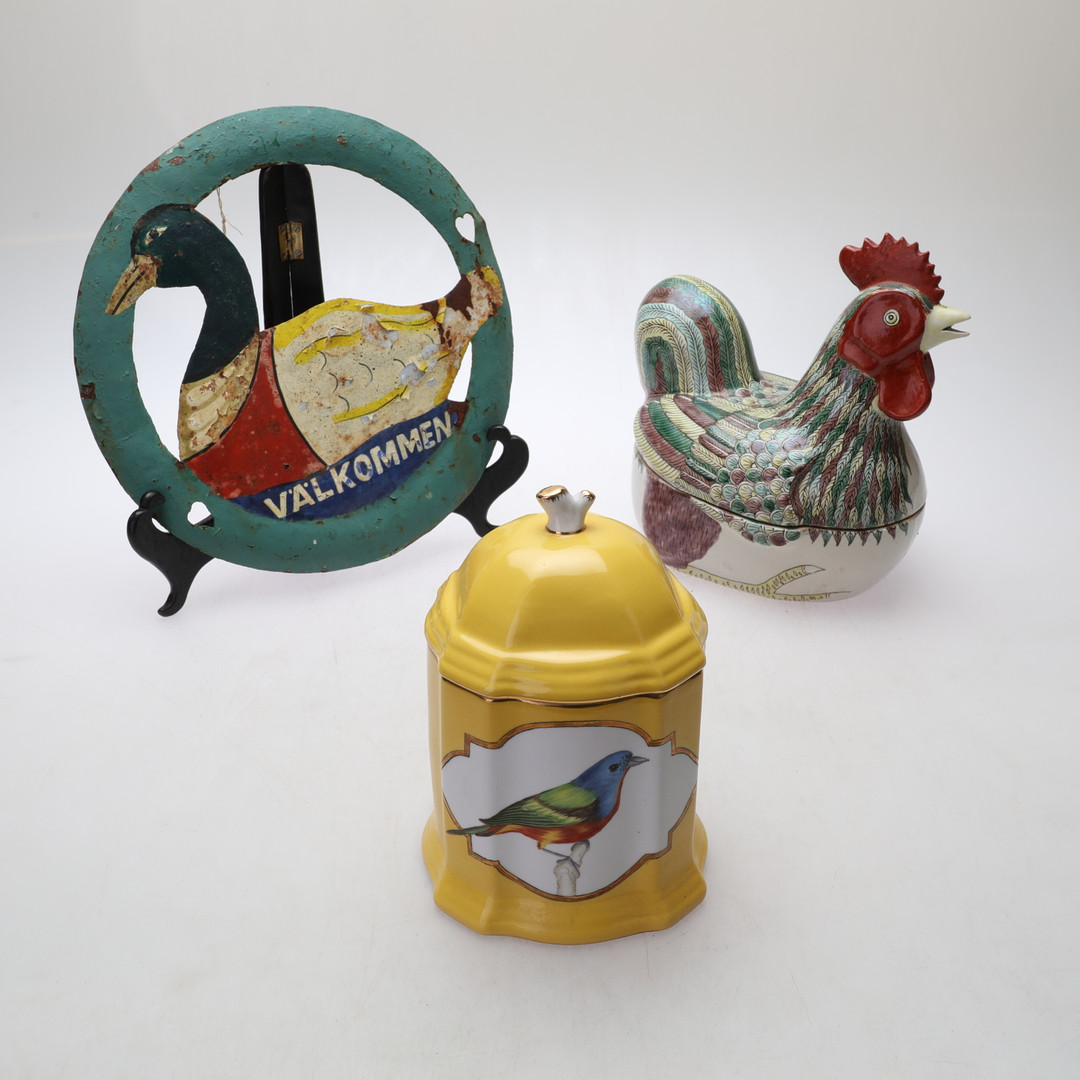 1497412. ÆGGEHØNNE, DÅSE, SKILT, 3 dele.