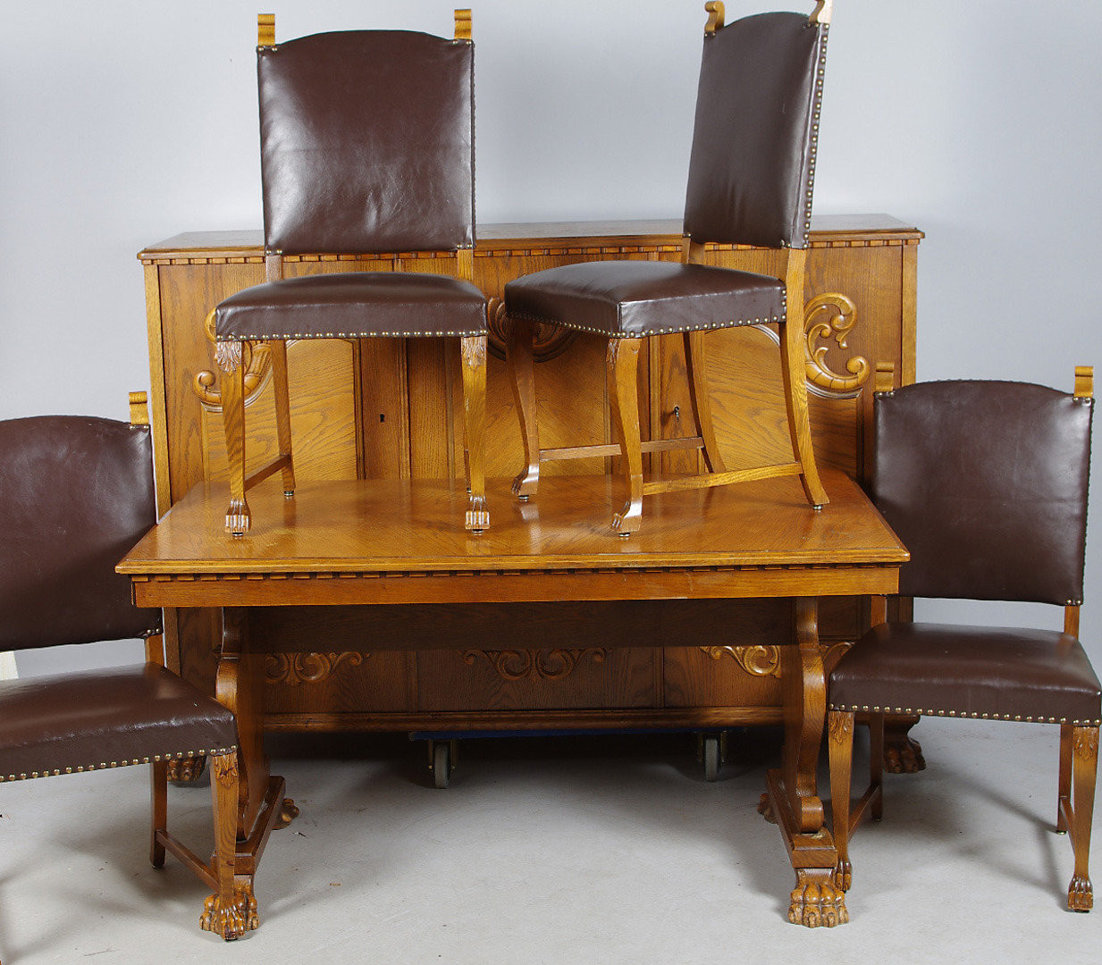 149975. MADGRUPPE, eg med læderbeklædte stole.