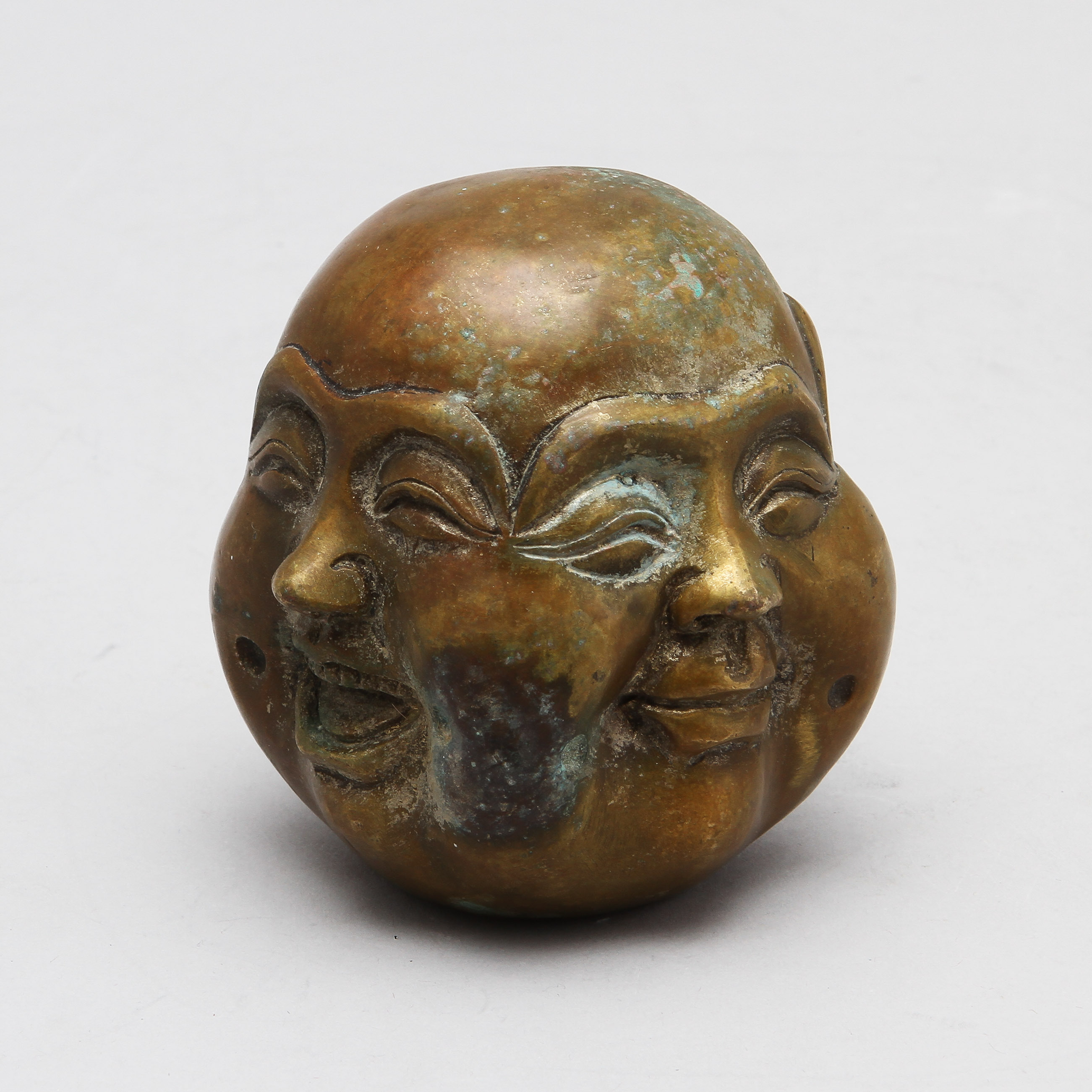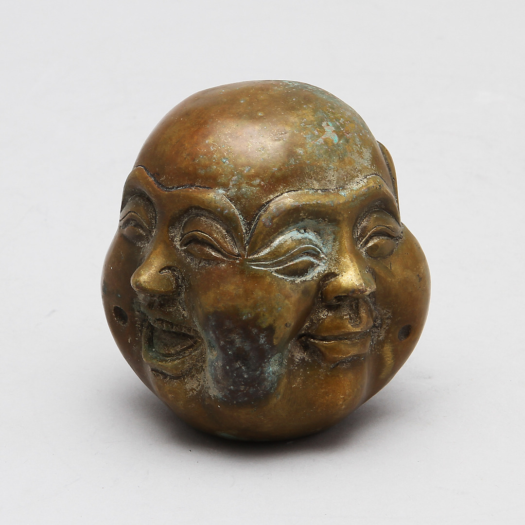 150564. FIGUR, messing, Buddhas fire ansigter.