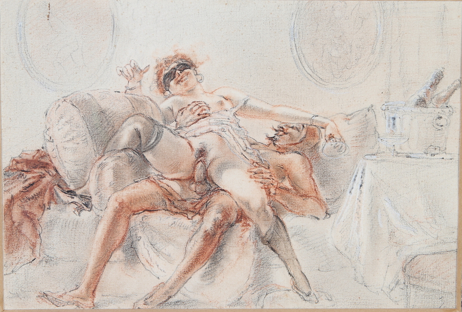 150708. OKÄND KONSTNÄR. mixed media, erotisk motiv.
