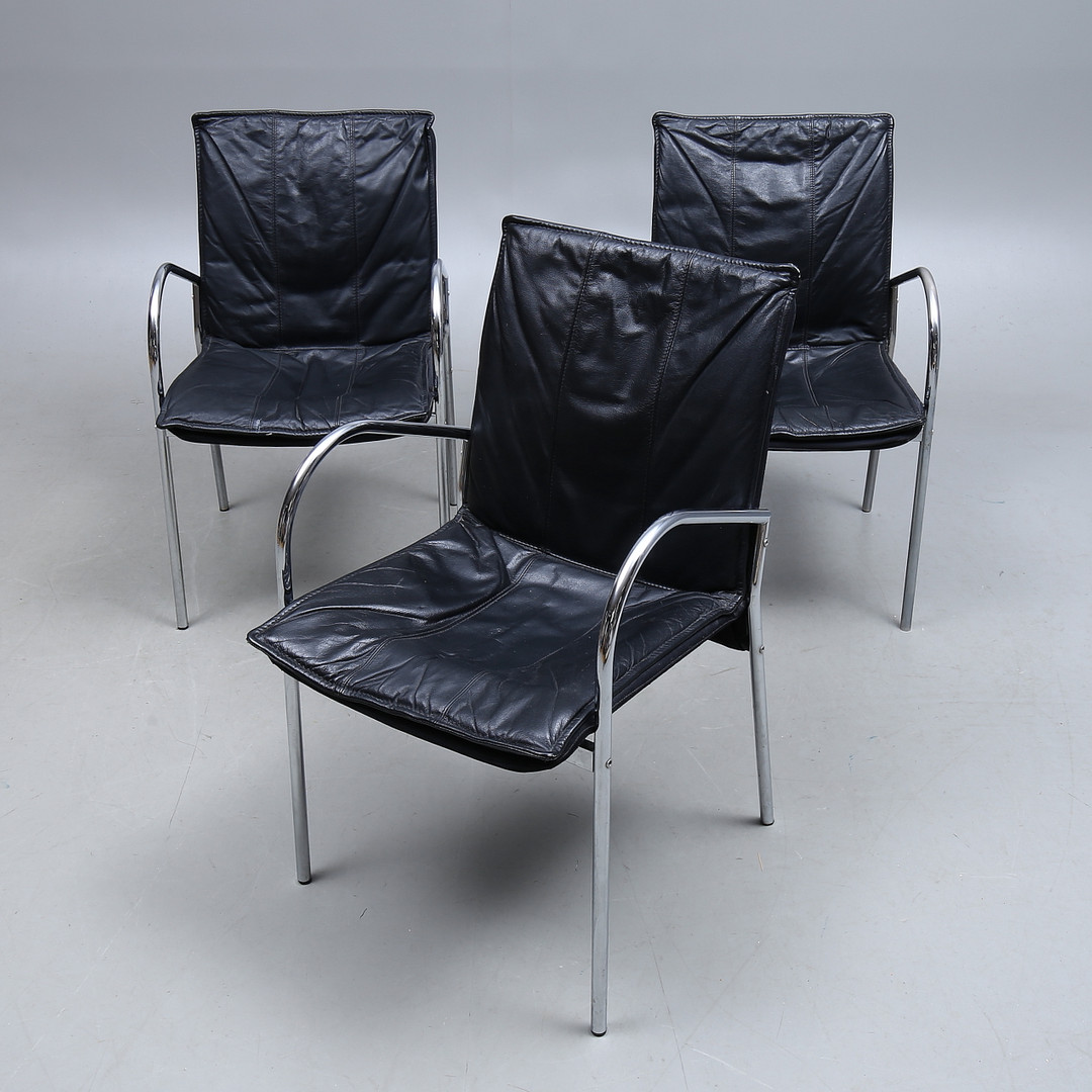 1507660. LÆNESTOLE, 3 stk., læder- og stålrør, 1900-tallet.