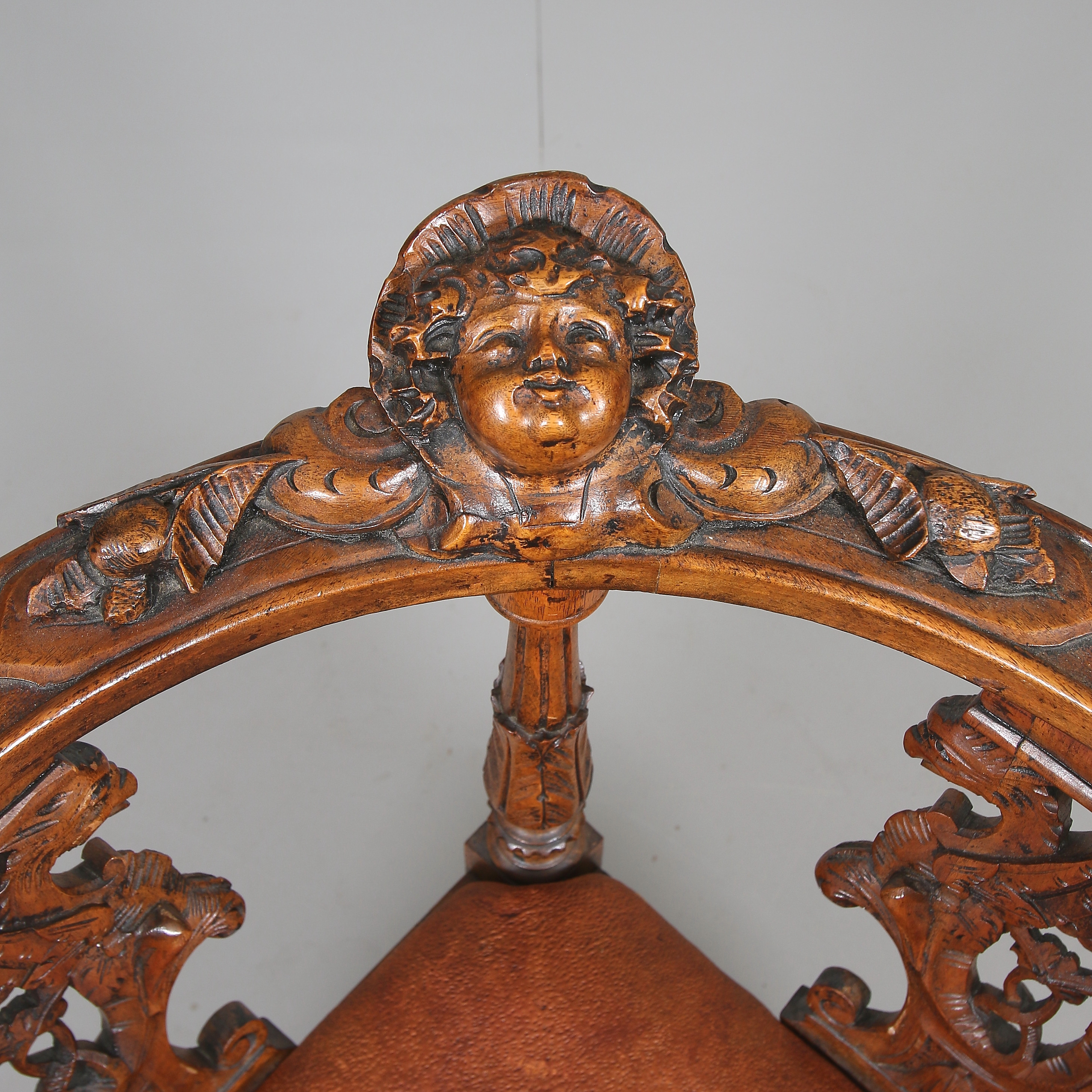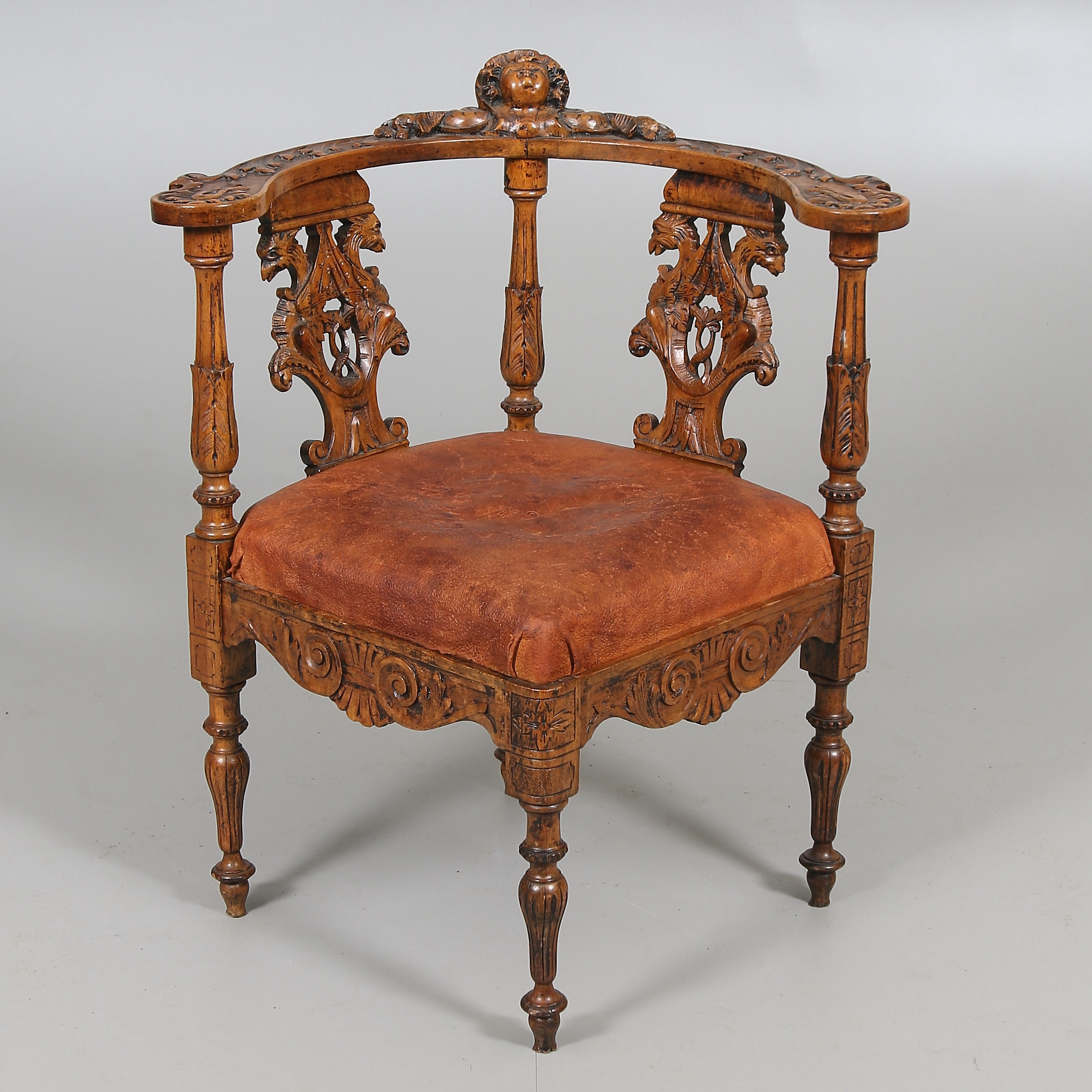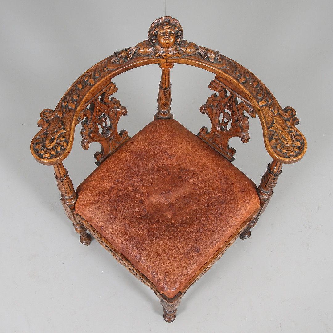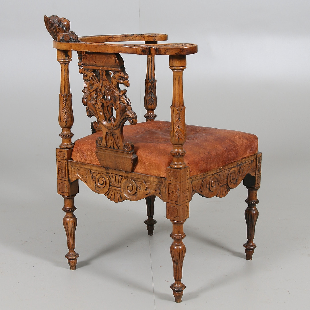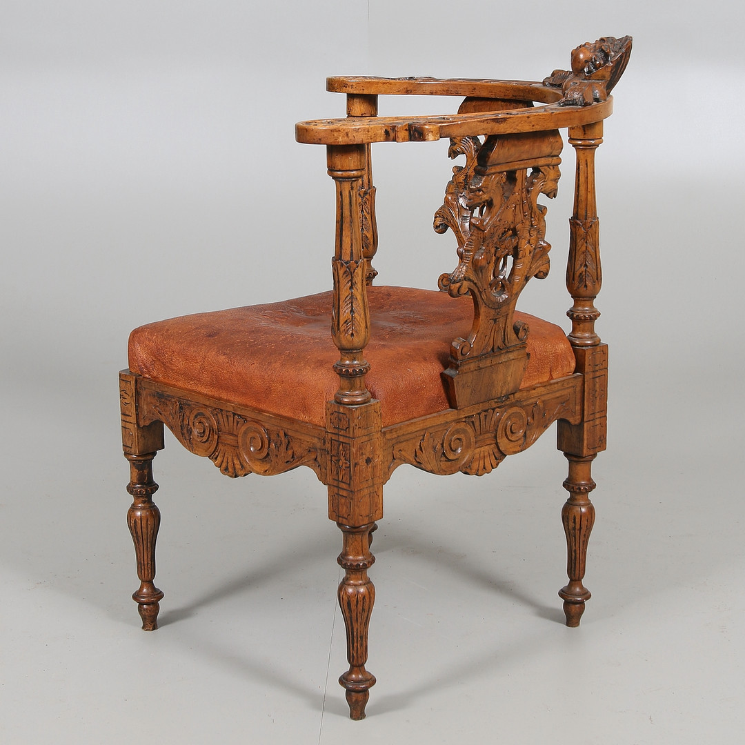 1509102. PULDSTOEL, træ, læder, 20. århundrede.