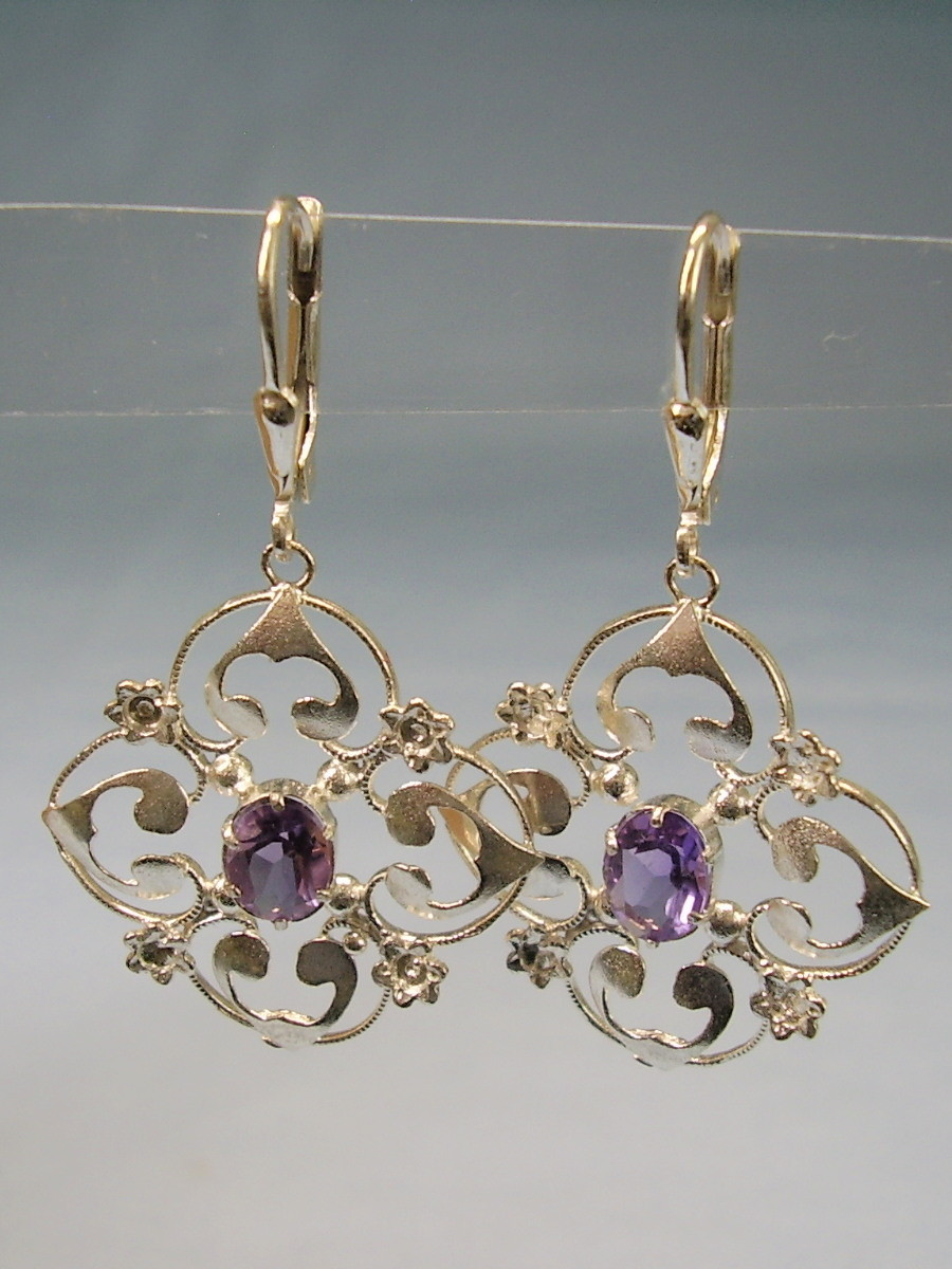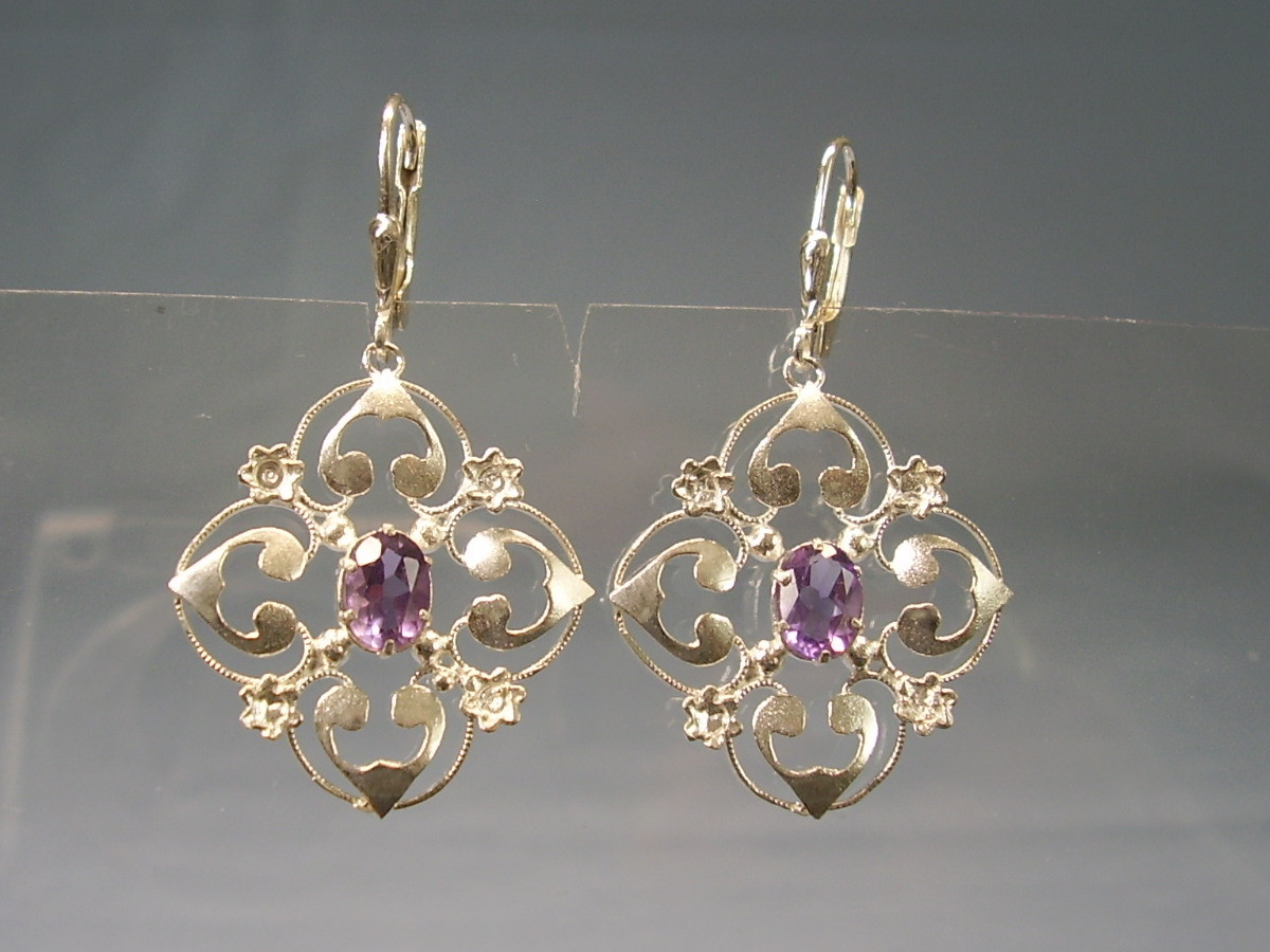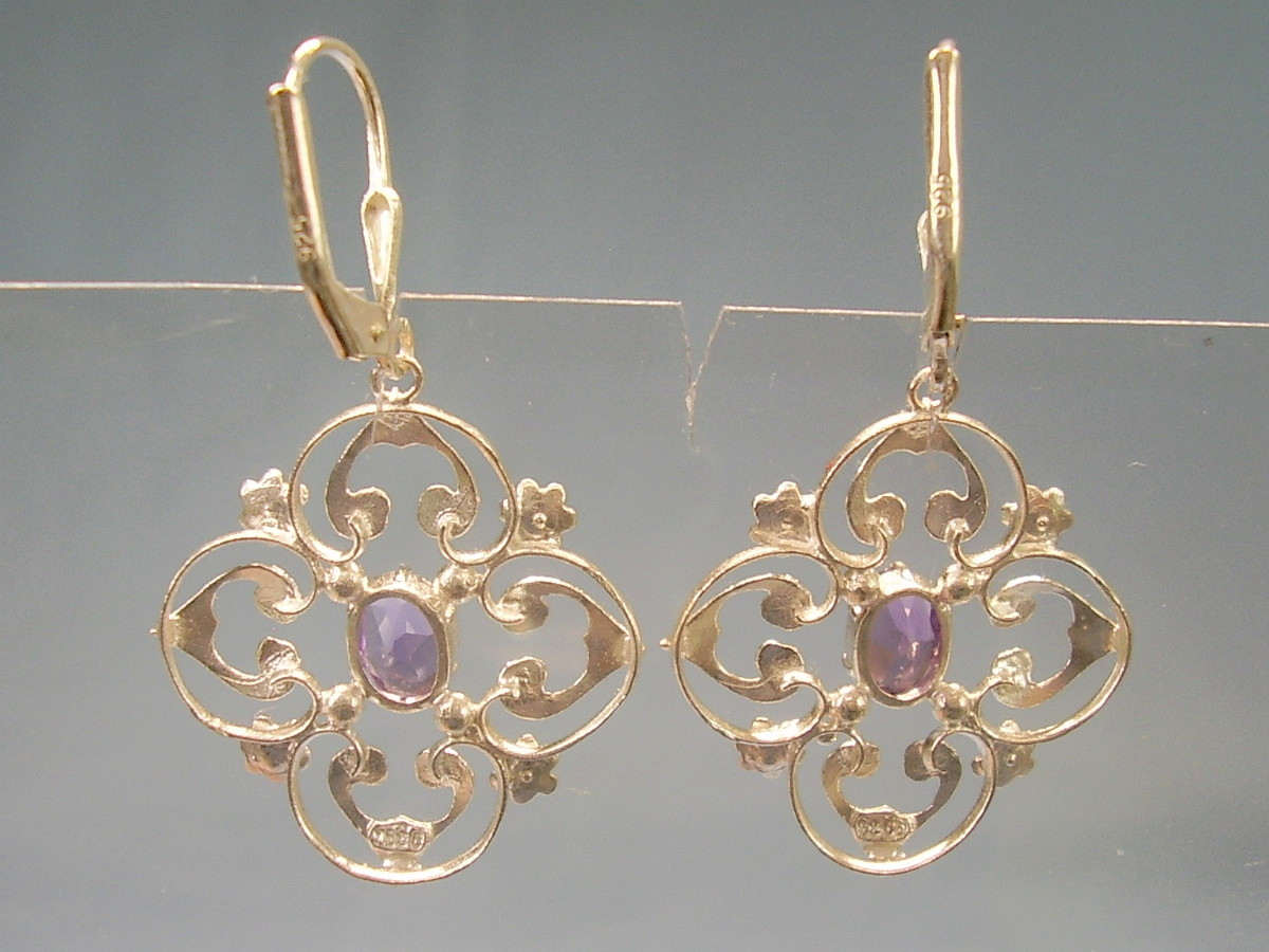 1514861. AMETHYST ØRERINGE SØLV 935 ANTIK.