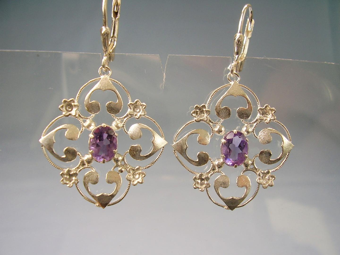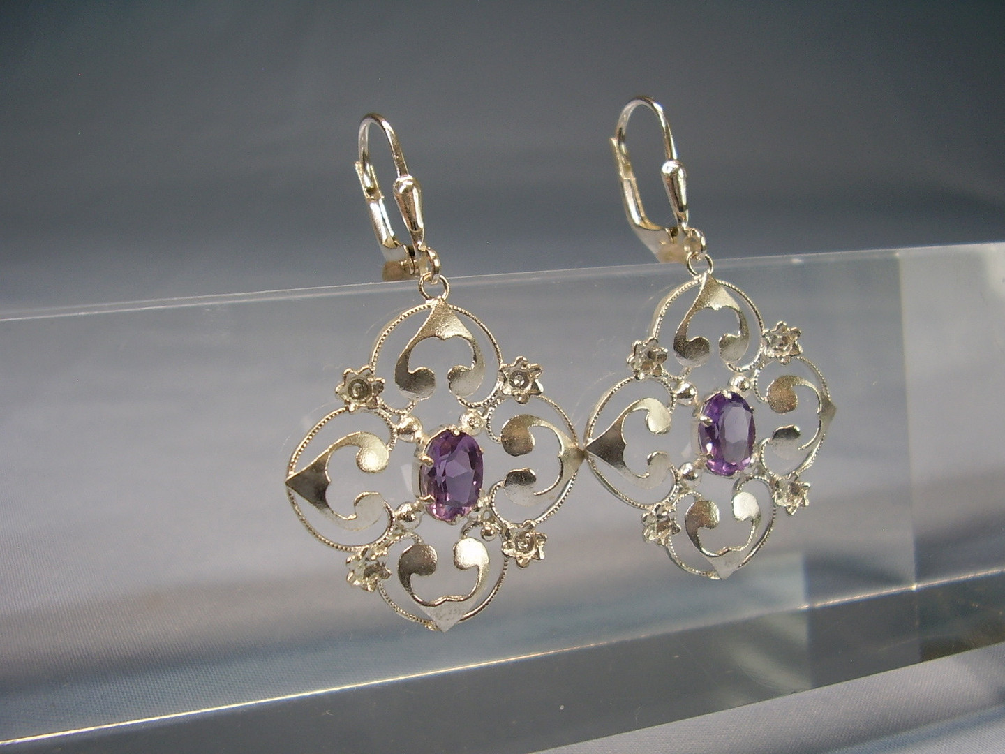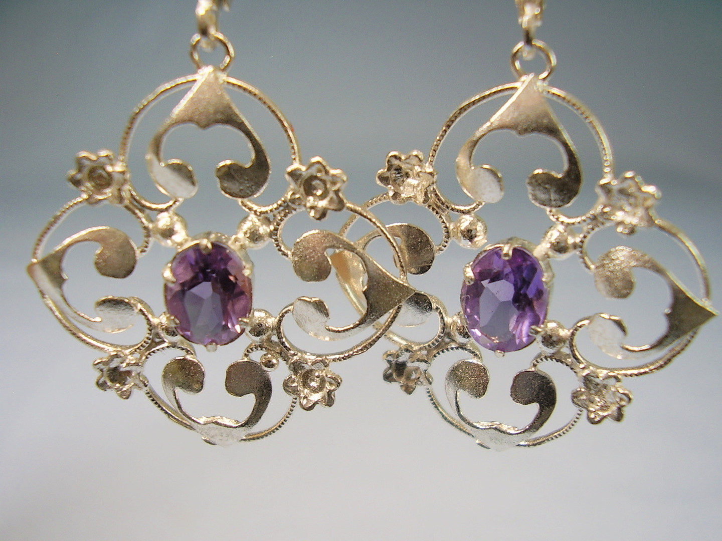 1514861. AMETHYST ØRERINGE SØLV 935 ANTIK.