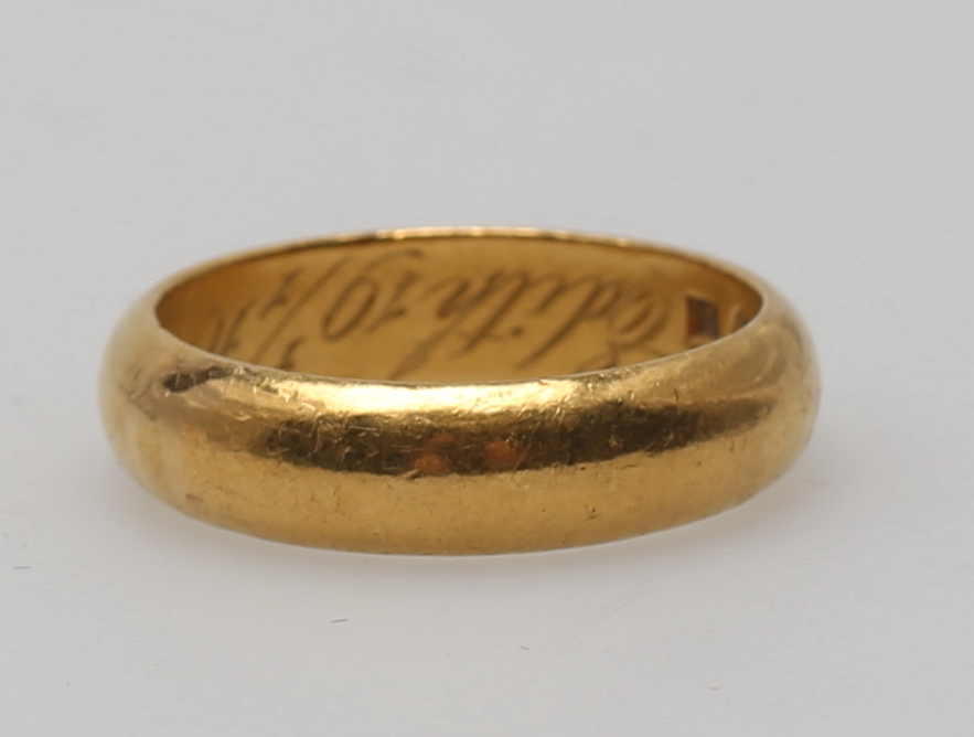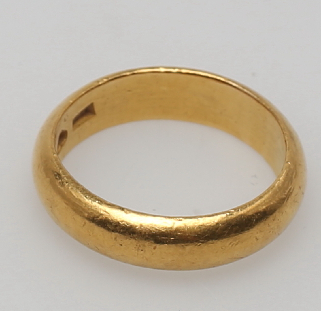 151897. GULDRING. 23K. Samlet vægt 12,4 gram.