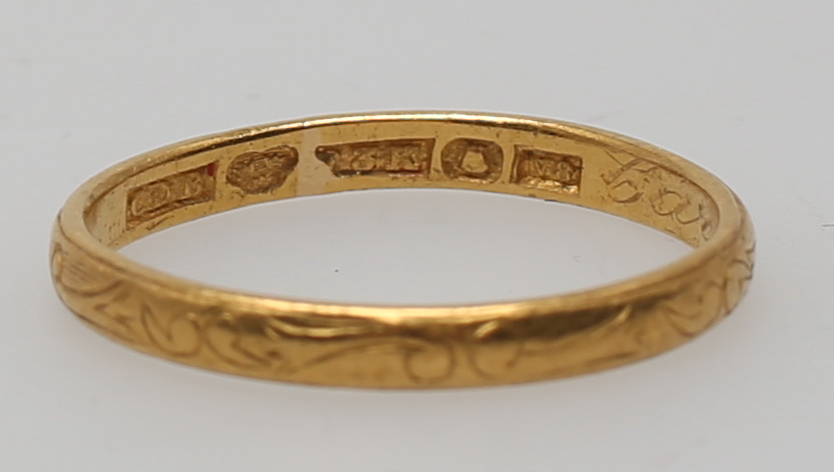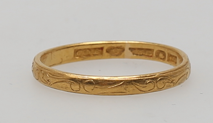 151899. GULDRING, mønstret, 23K. Samlet vægt 3,0 gram.