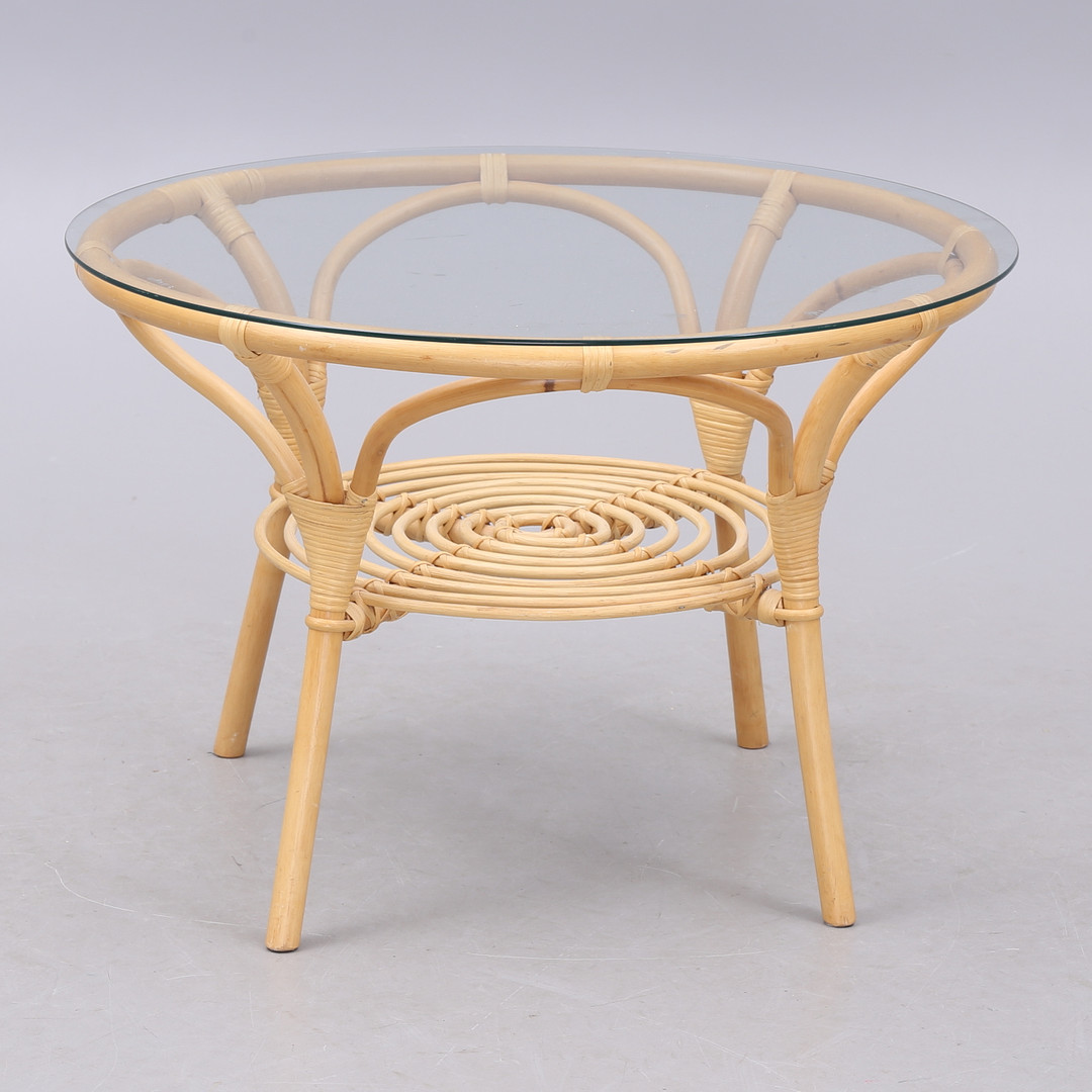 1520858. SOFABORD med glasplade, bambus.