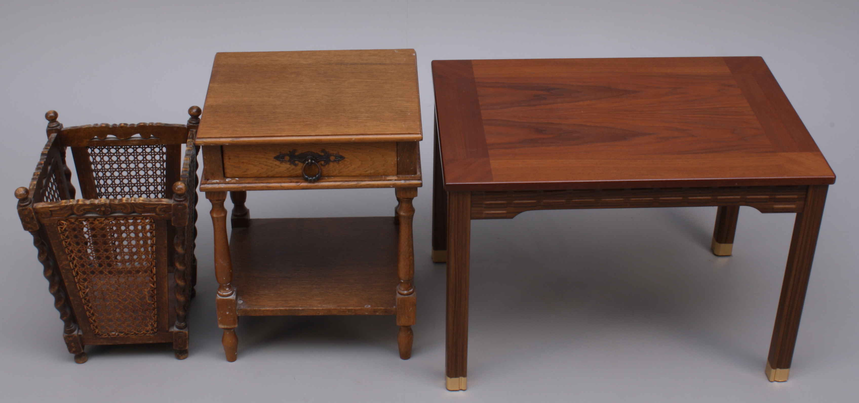 152195. MØBELGRUPPE, 3 dele, træ: skrald + 2 borde.