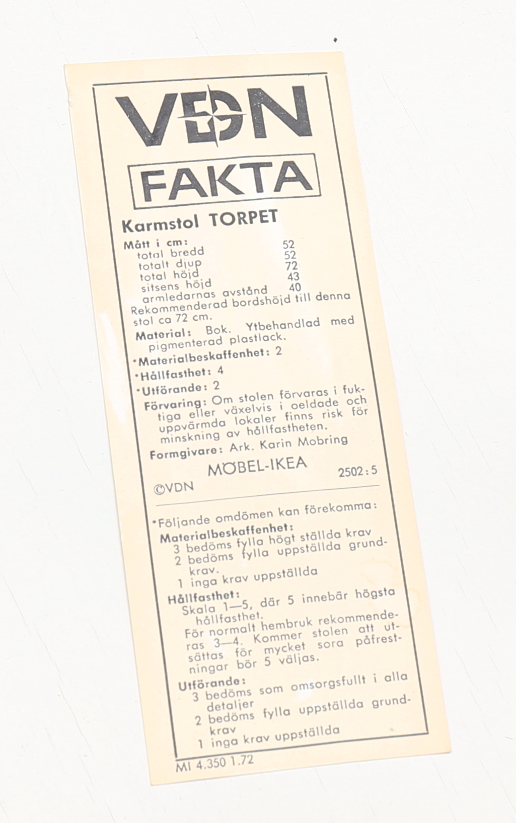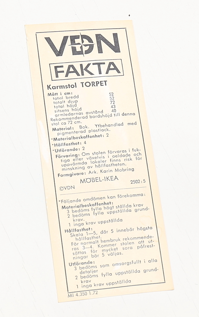 152210. LÆNESTOL "Torpet", Karin Mobring, IKEA, 1960'erne.