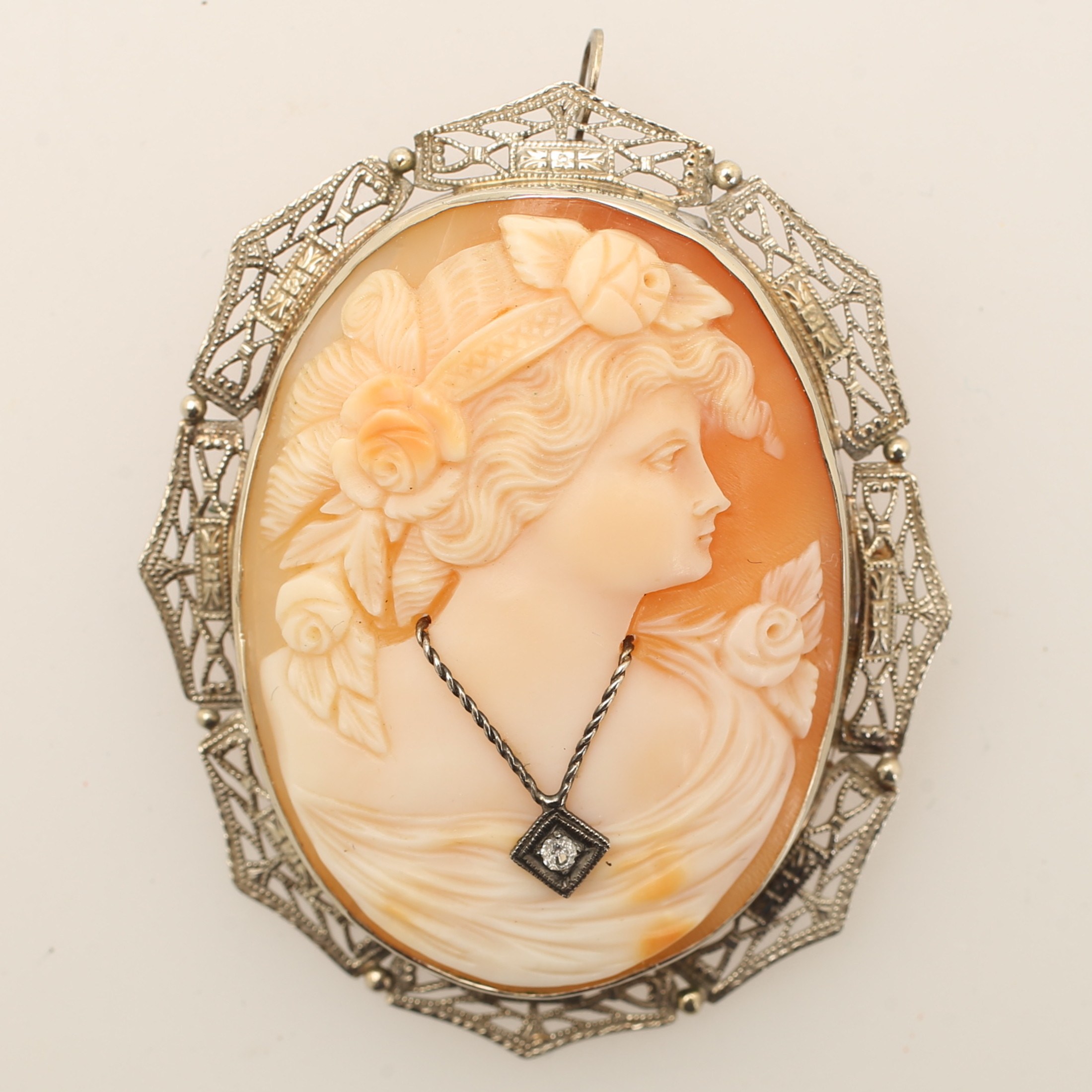 1522220. BROCHE, cameo, 14k hvidguld.