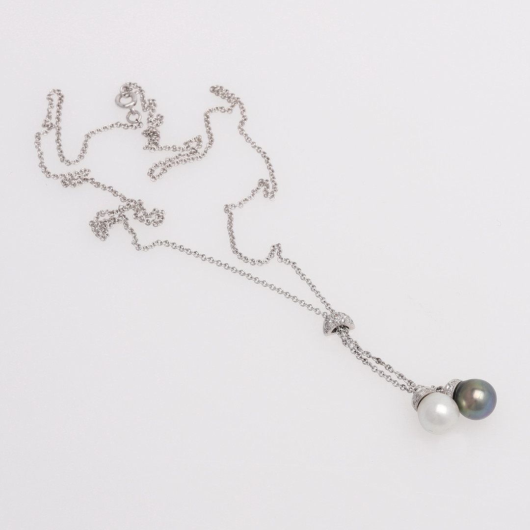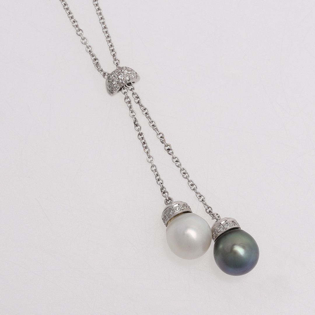 1522595. HALSKÆDE MED PERLER OG DIAMANTER.