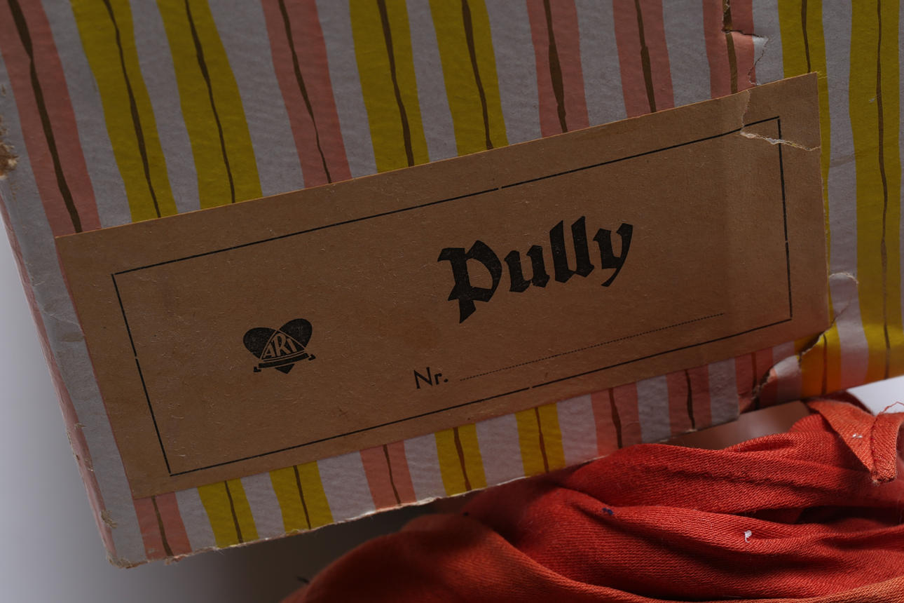Større trold med skader på hår og tøj. Skader på pap.