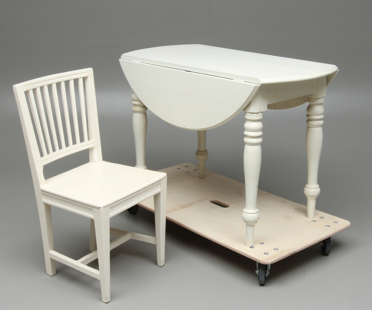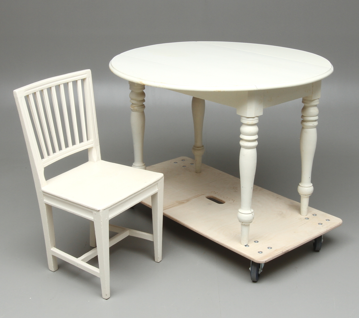 15302. KLADEBORD og STOL, hvidmalet, 18/1900-tallet.