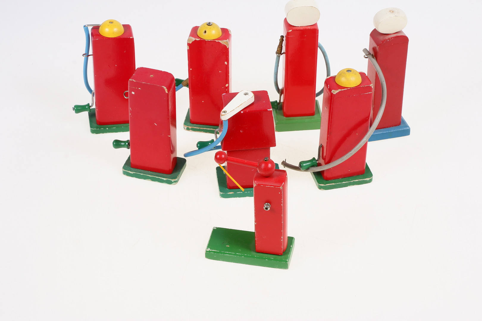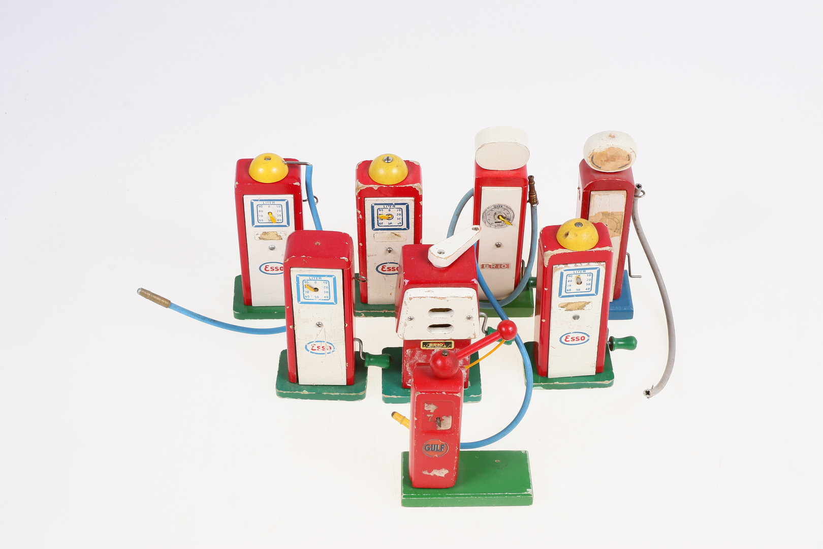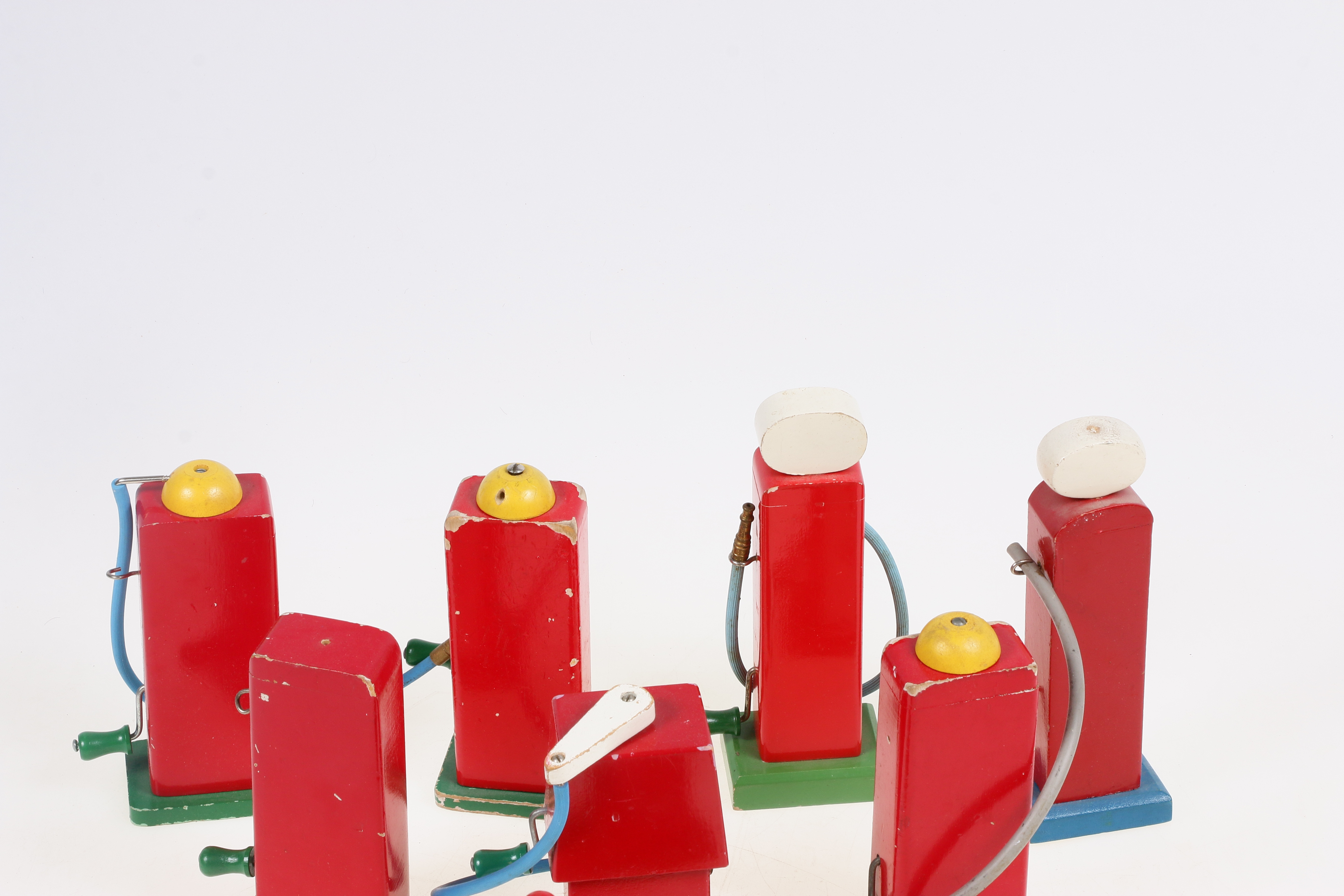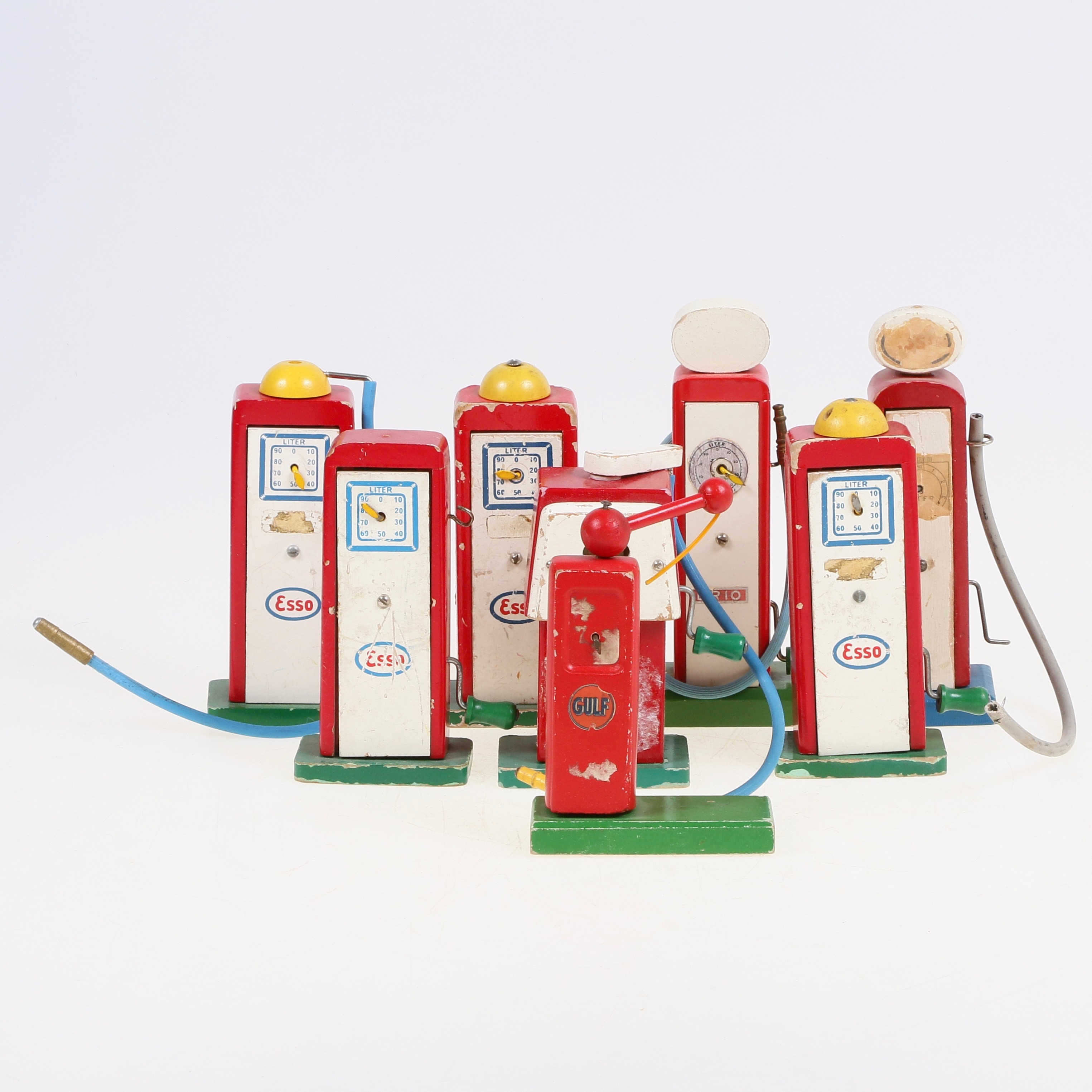 1533719. BENZINPUMPER, 8 stk. Træ, Brio, 20. århundrede.