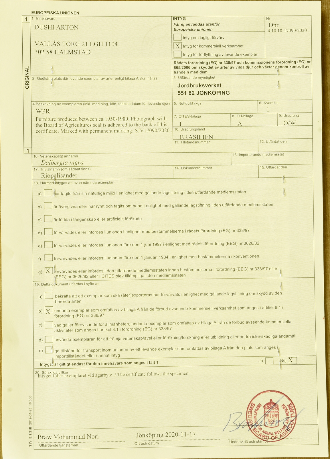 1537158. SKÆNK, Rio palisander, Kurt Østervig, Danmark.