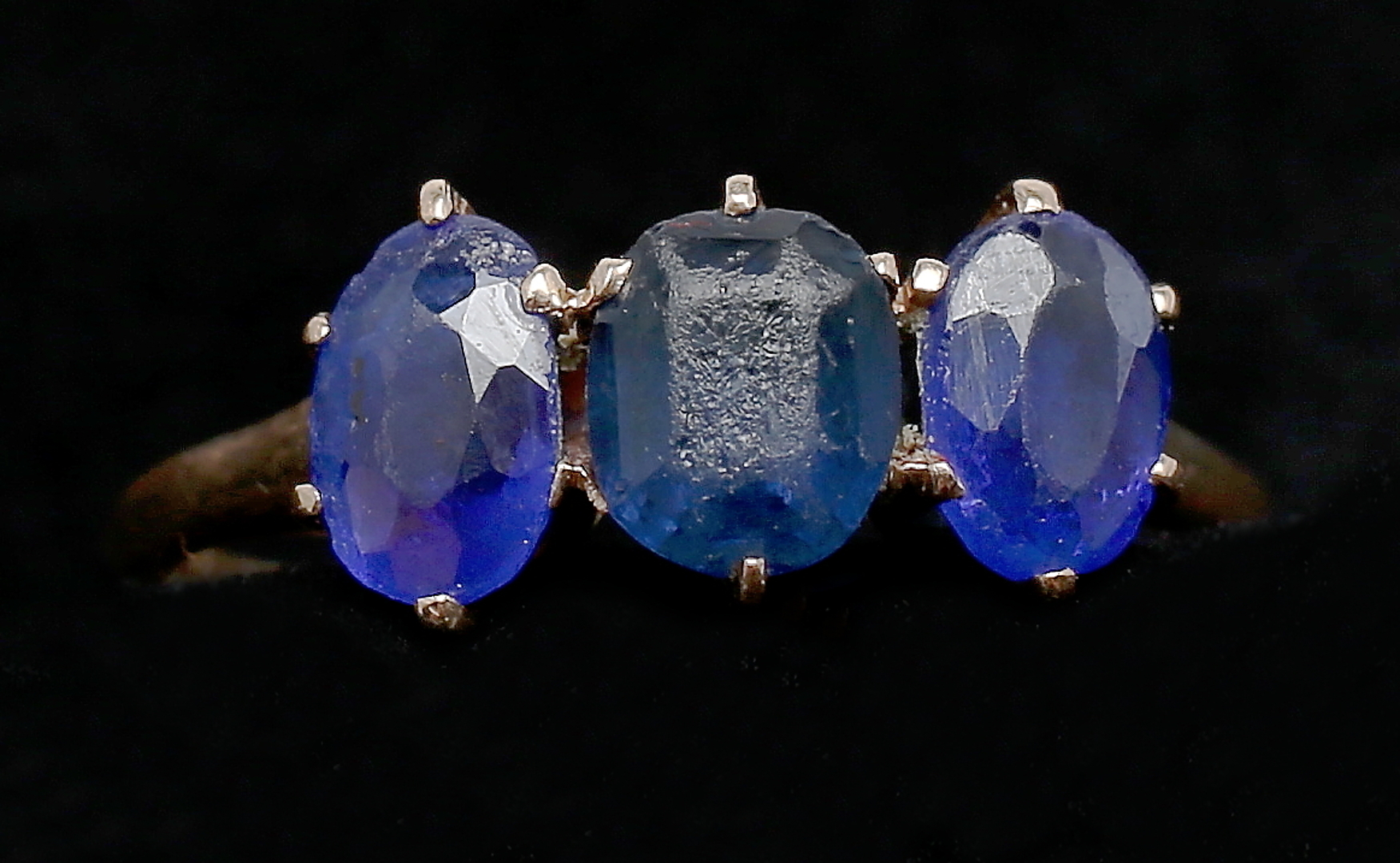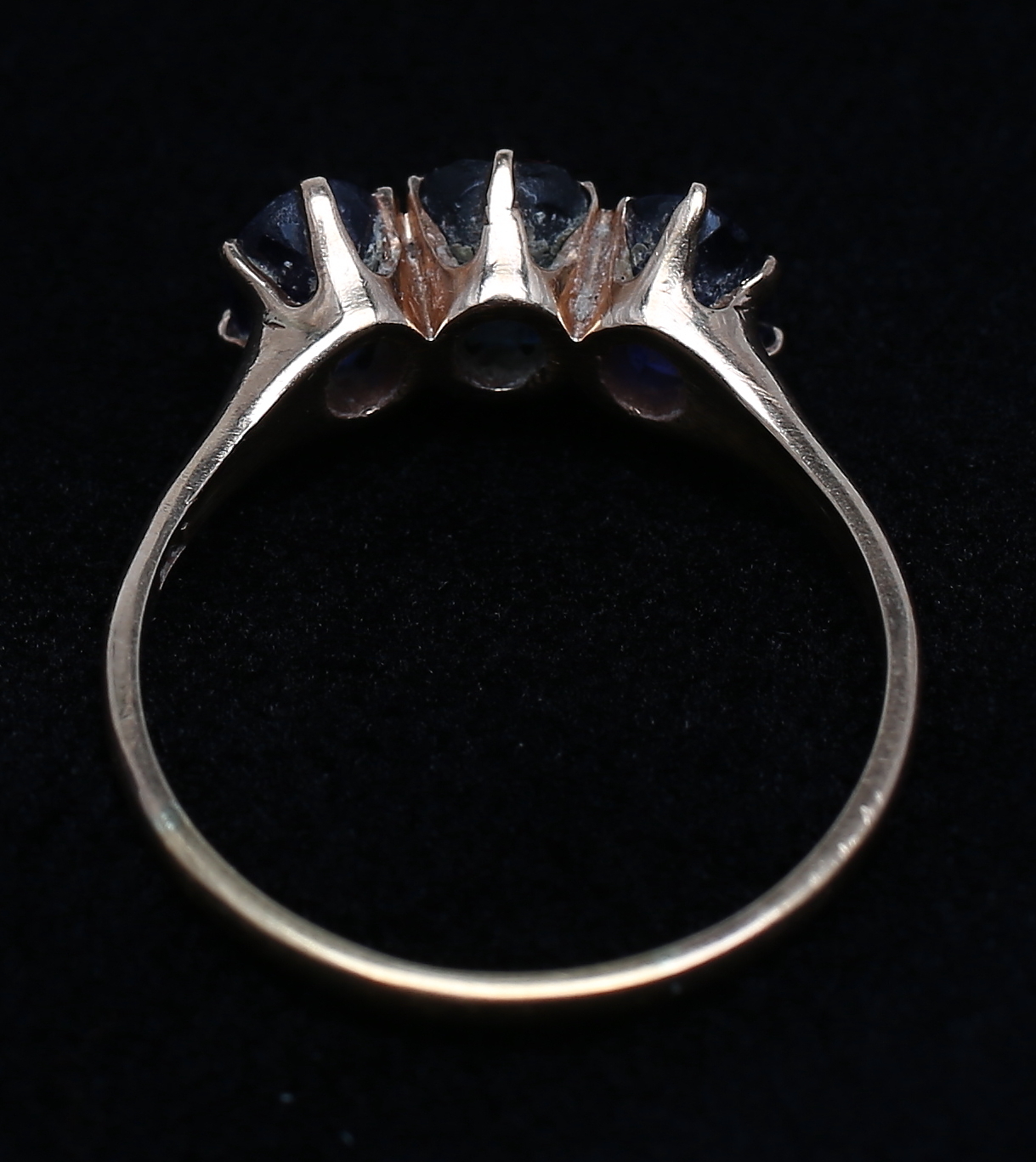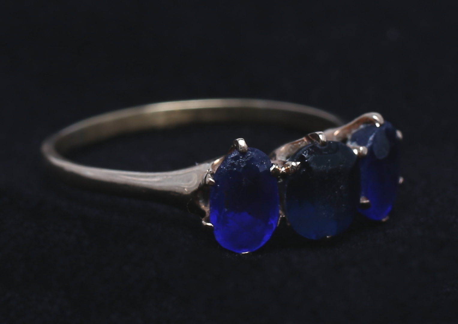 154091. GULDRING, 9 K, 3 gram, 3 blå sten.