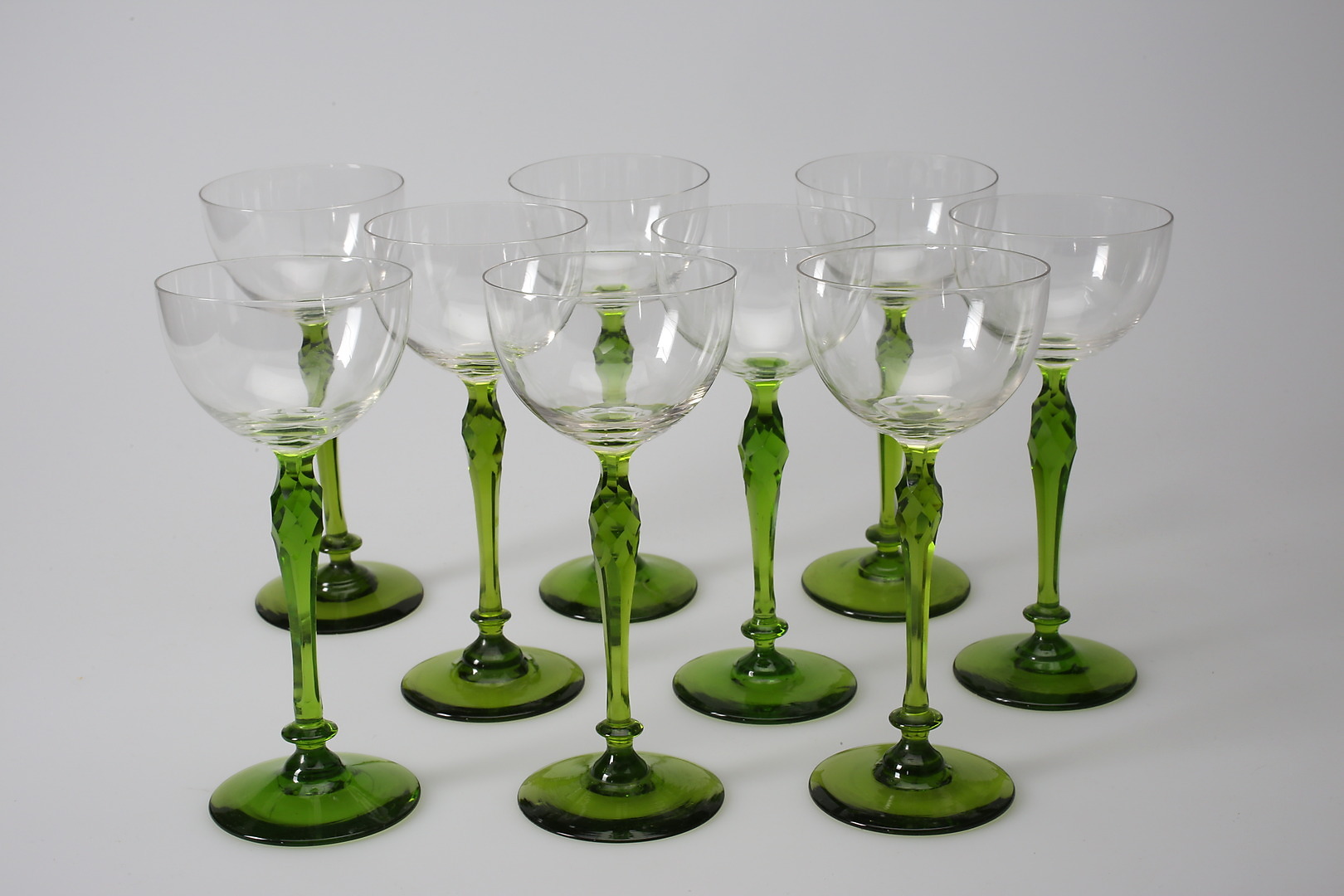 154176. HVIDVINGLAS, 9 stk + GLASSÅL.
