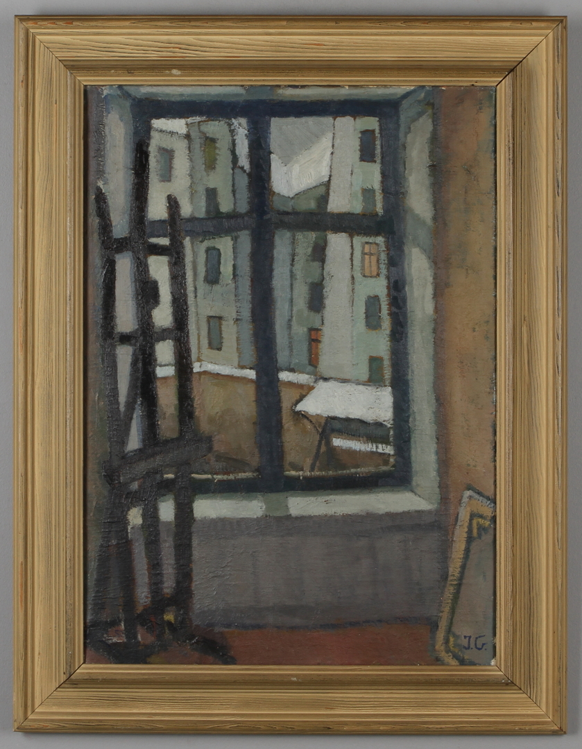 15451. INGA GRUBBSTRÖM. "Studio interiør", olie på lærred, monogram signeret.