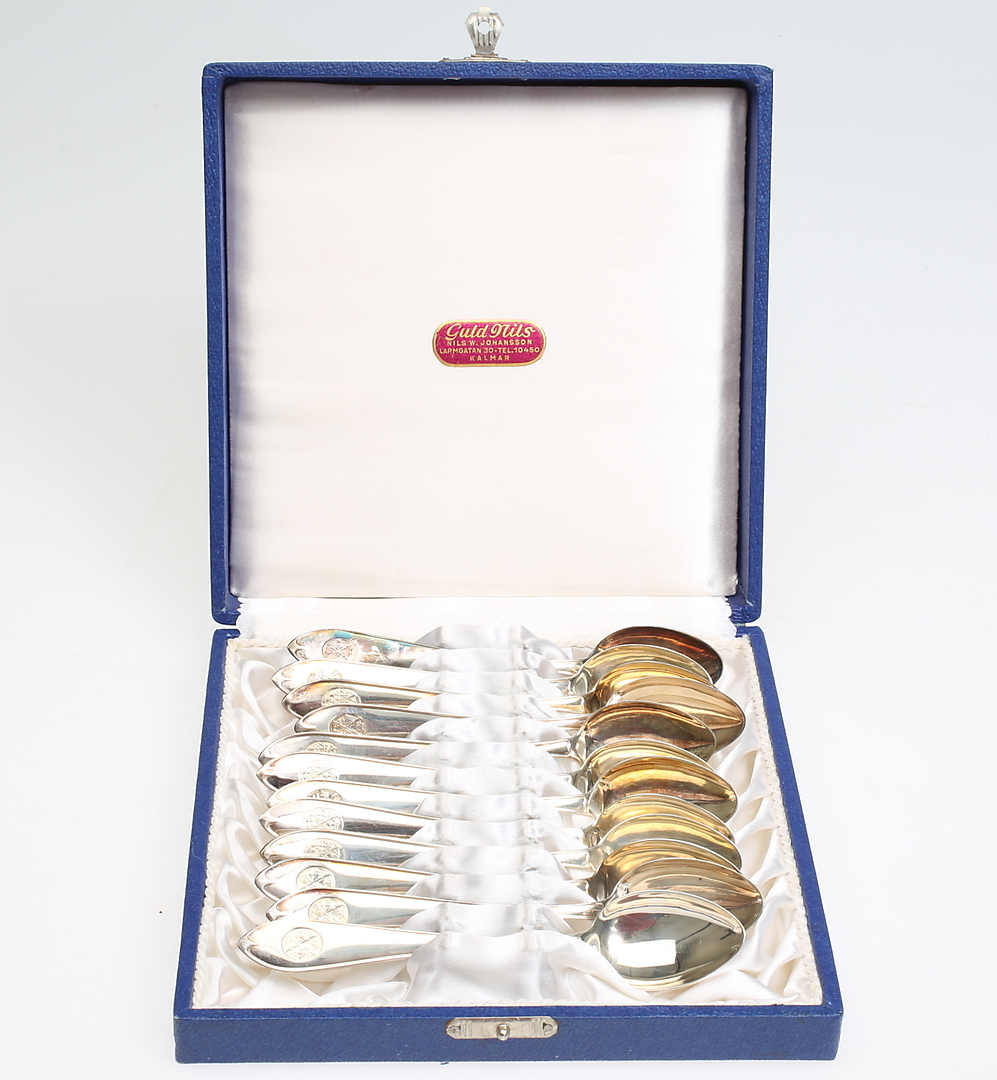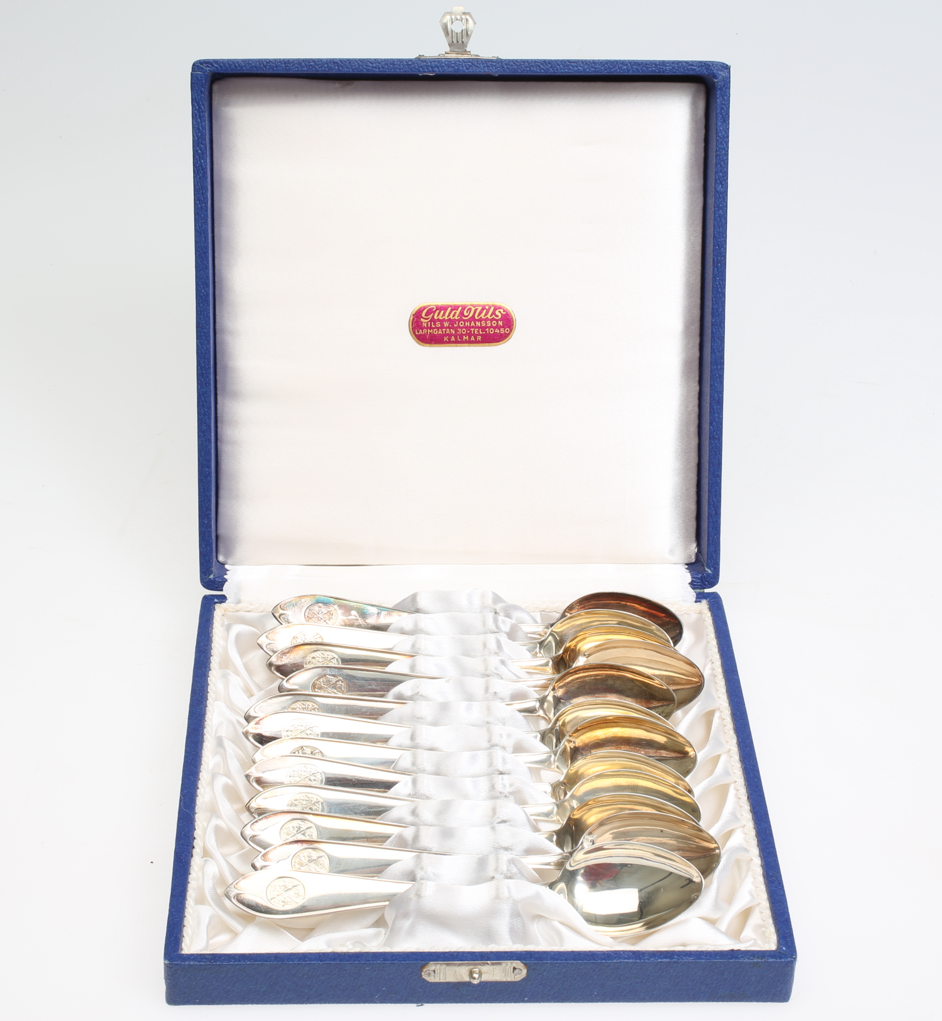 155984. KAFFESKERE, Sølv, 12 stk. i etui.