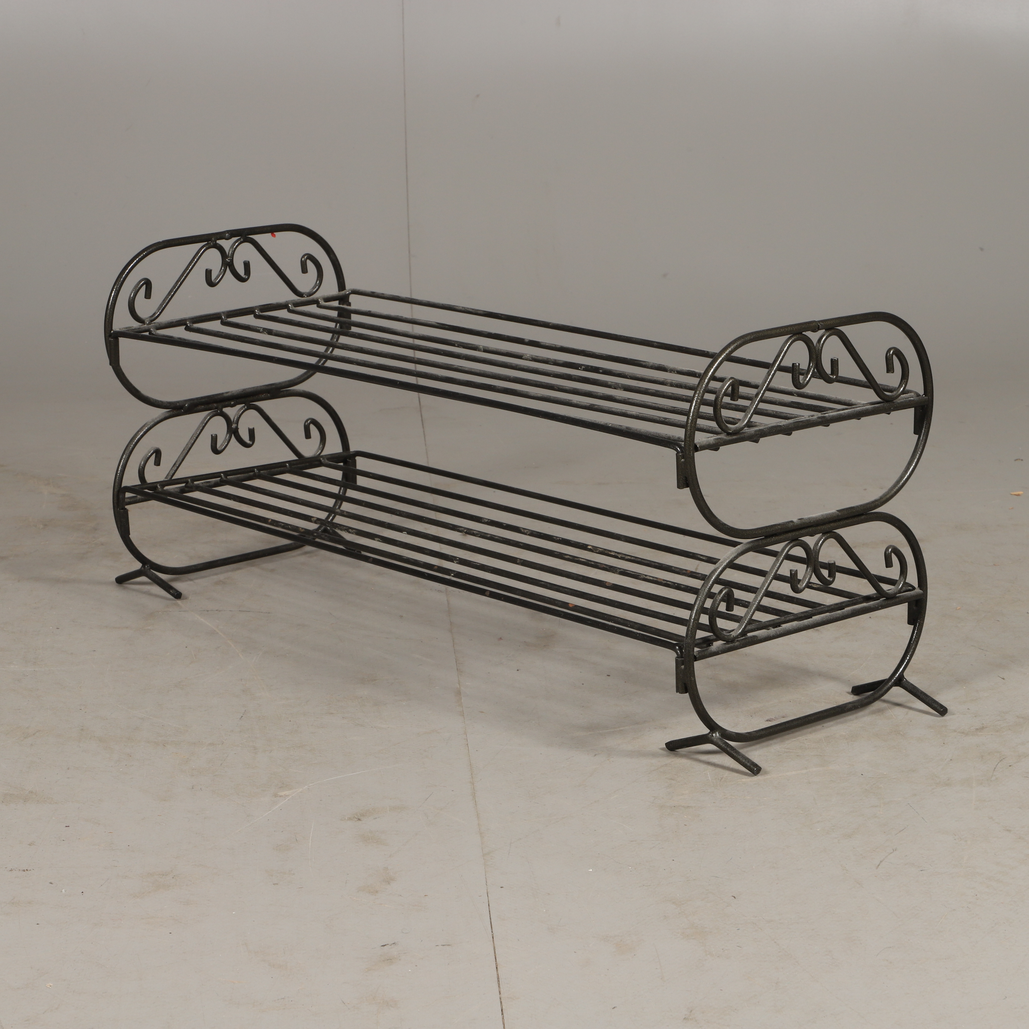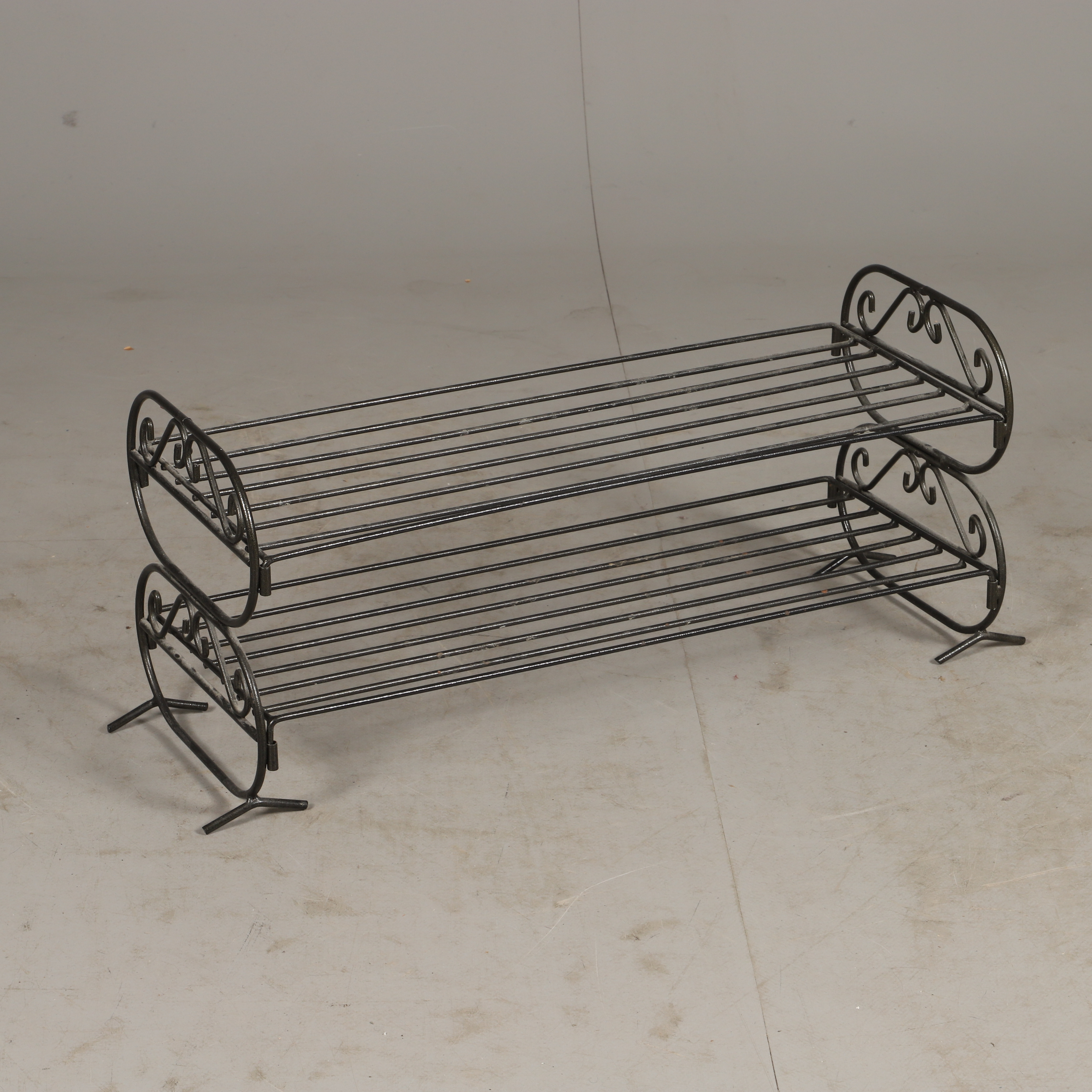 1566574. SKOSTATIVER, sortmalet smedejern.