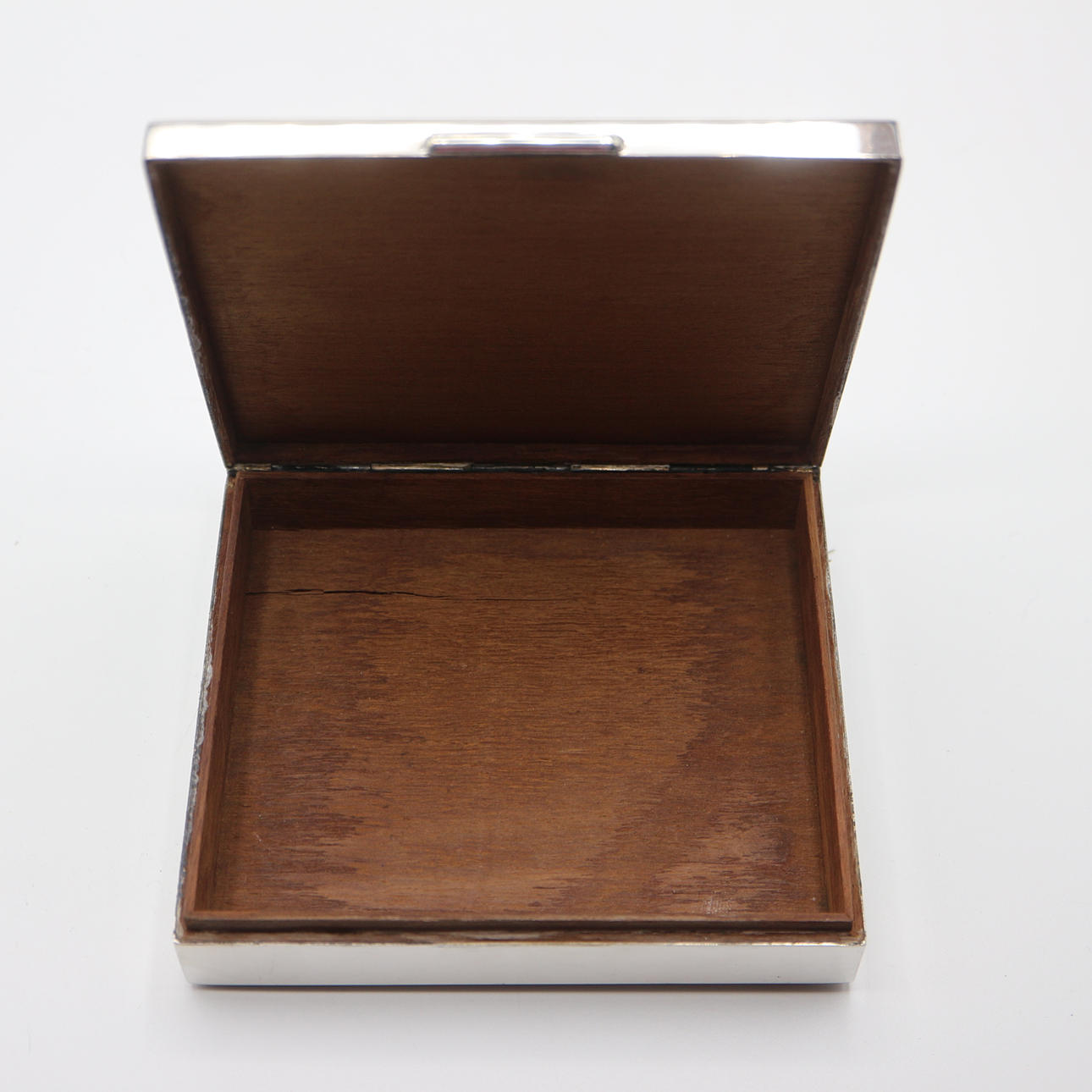 Sølv æske 263,85 gram, med en mahogni indsats.